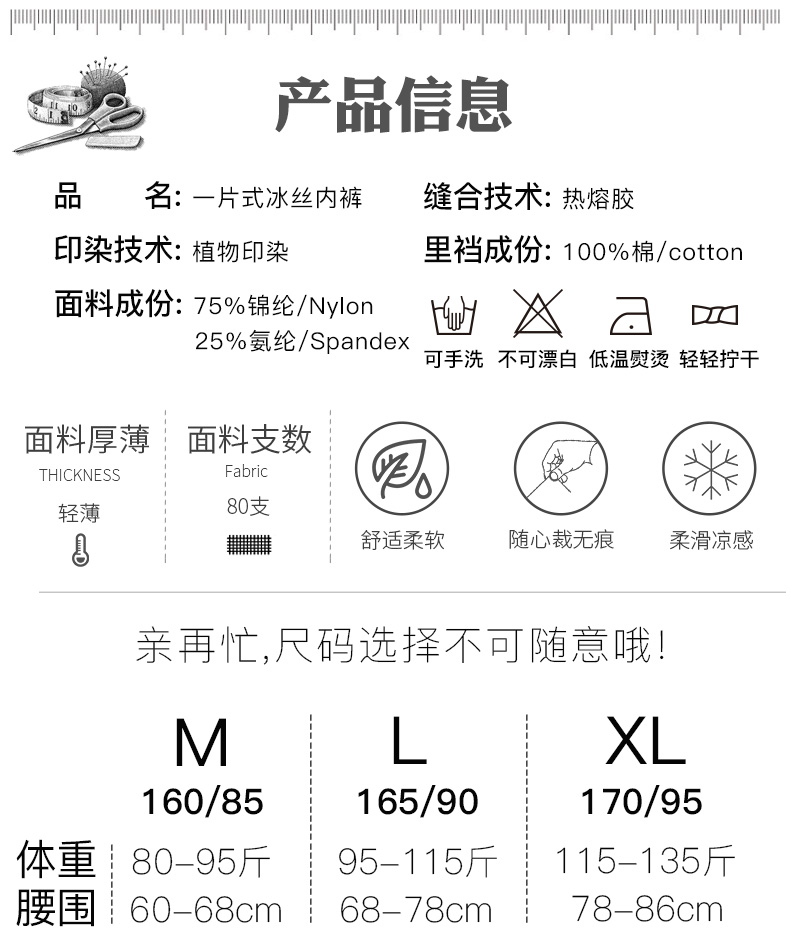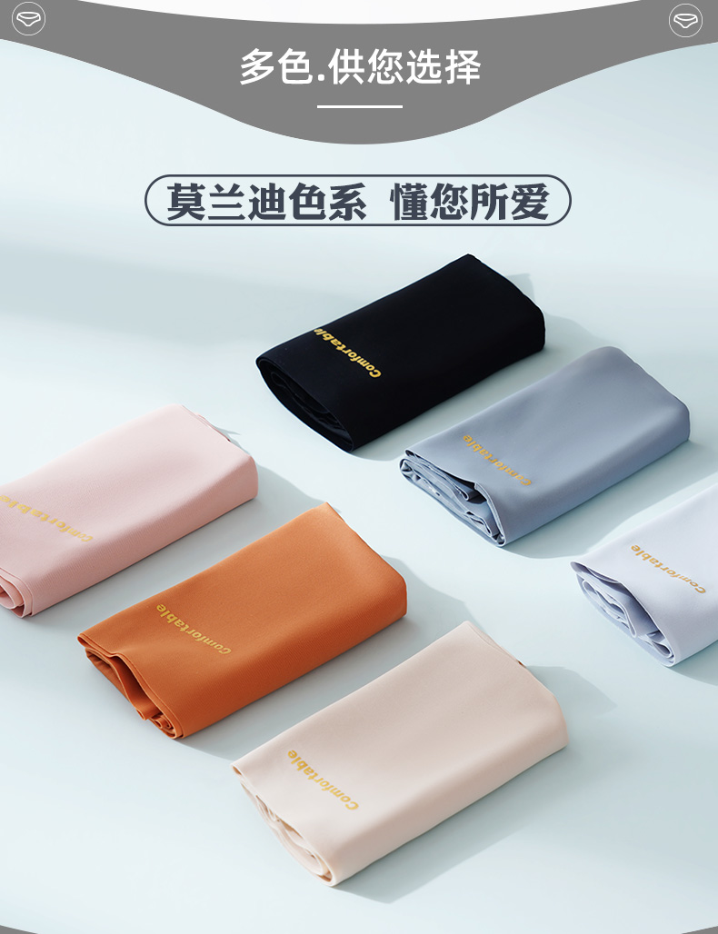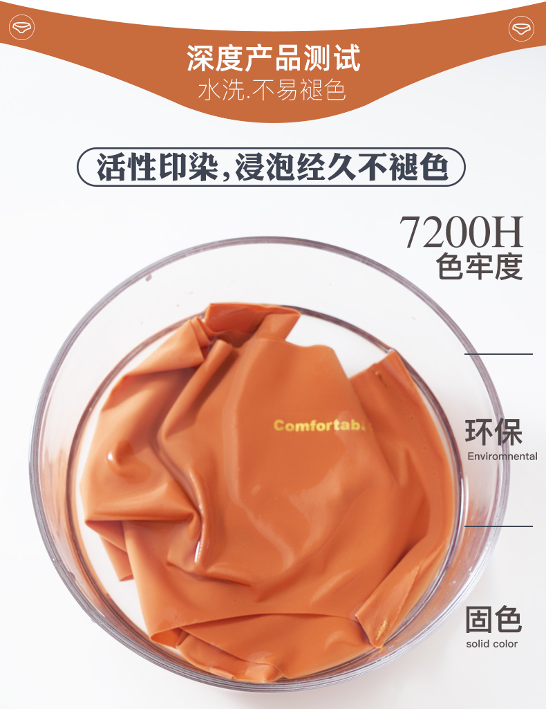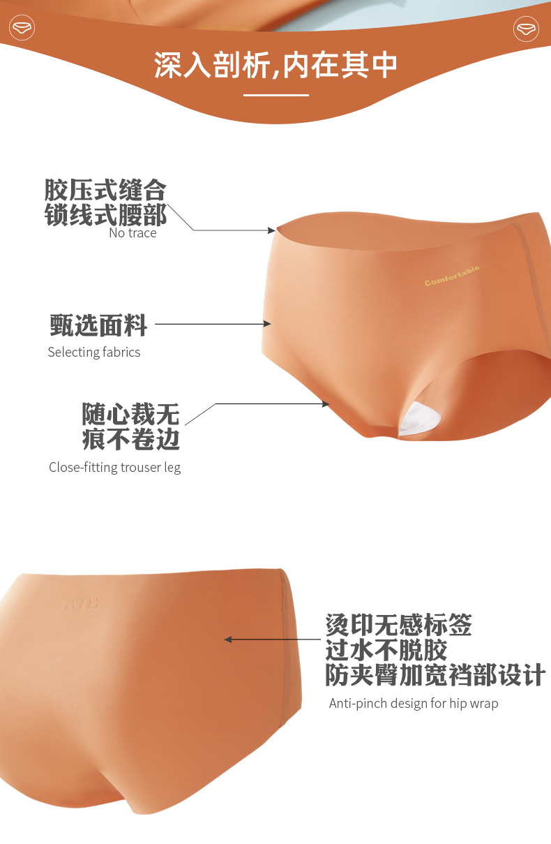 细节上:整体中腰设计,腰部压胶式缝合锁线,无痕不卷边,烫印无感标签,舒适不磨皮肤,过水不脱胶,加宽裆部,贴合舒适不夹臀。莫兰迪色系,天然植物印染,健康不掉色。
