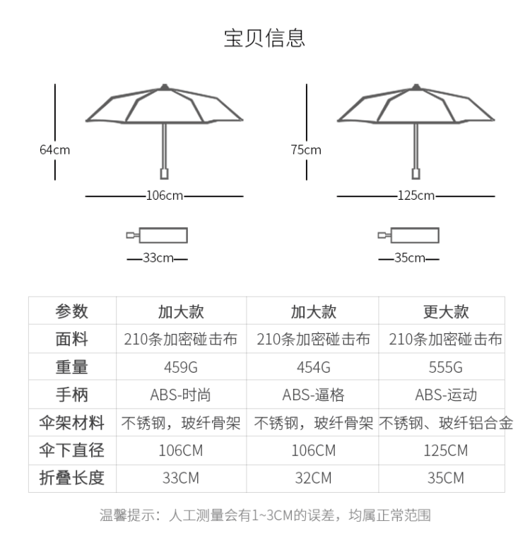 天猫宝迪妮旗舰店22.9元,可领5元优惠券,实付14.9元到手,是正价199元的0.7折;升级12骨加大加固 全自动一键开收 安全反光。还有超大款和黑胶防紫外线款可选,售价69元。多色可选,规格加大款直径106cm,超大款125cm,紫外线款97cm。