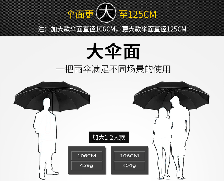 这款宝迪妮 全自动伞,是由高强度的铝合金+玻纤组成的伞骨,具有强度高,重量轻的特点,亦刚亦柔,持久抗风不易折断;高碳钢弹簧,高弹力,高拉力,更稳固;伞面升级210条的高密伞布,表面附着纳米防水涂层,有效阻隔雨水,一甩即干。强力反光条包边,在雨夜中行走中,提供了安全保障。