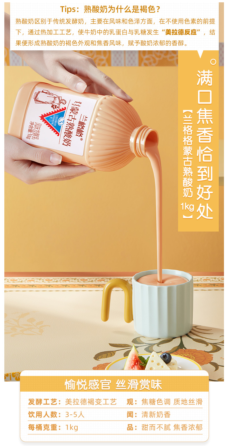 这款包含草原酪酸奶、炭烧熟酸奶各一瓶,2斤/瓶量大实惠,可直接吃,也可制作冰激淋,水果布丁等,吃法百搭。酪酸奶传承传统蒙古酸奶制作技艺,以被列入盟市级非物质文化遗产名录,采用草原优质牛奶,独特配比菌种,口感独特,味道更香浓。