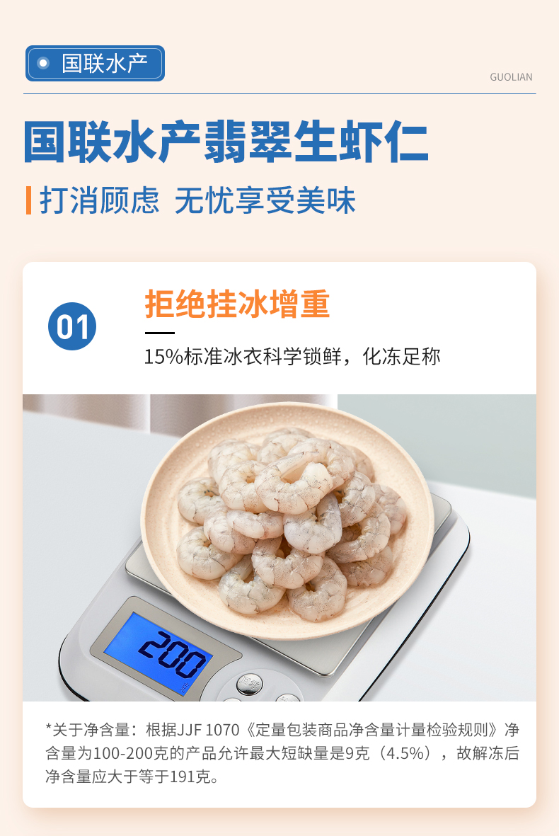 天猫GUOLIAN官方旗舰店100.3元,拍3件可领300-211元优惠券,实付89.9元到手,上市公司国联水产(股票代码3000),翡翠生虾仁,拥有“ACC-PAP” 四星认证,通过国际认可的水产养殖规范,是目前水产行业中,对水产公司的高级别国际认证。