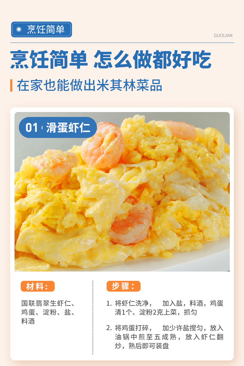 国联水产翡翠生虾仁加大号,虾仁头尾相接情况下直径约4.2cm,每200g虾仁个数10~14个。优选鲜虾活虾,去壳去虾线,口感弹嫩鲜滑爽口,营养丰富。