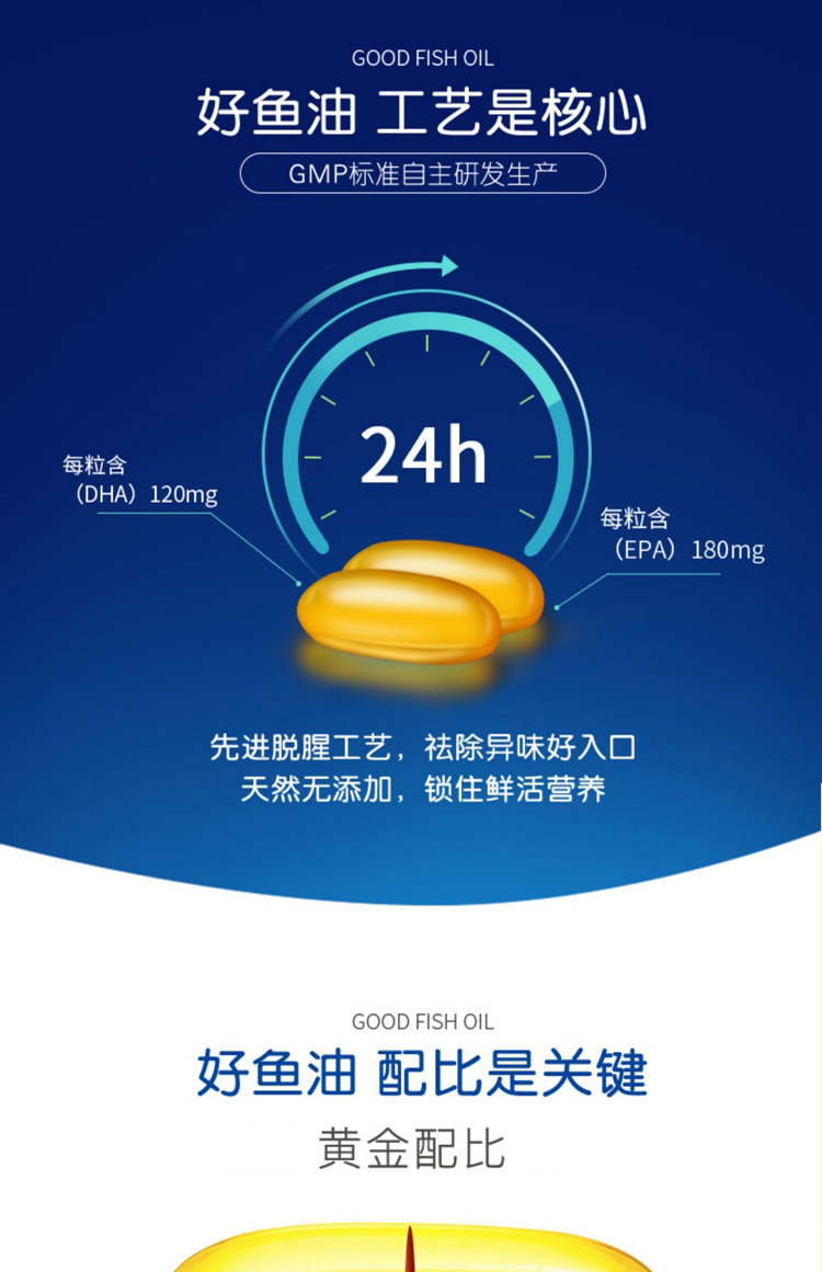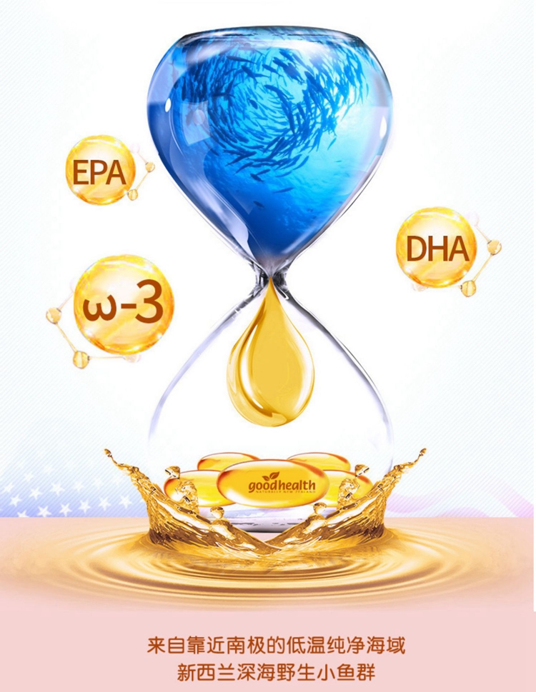 Good Health 好健康 Omega-3深海鱼油,采用高级深海鲑鱼等制成,含丰富的EPA及DHA不饱和脂肪酸,能在血液中迅速的被吸收,促进血液流通,减低血液在血管中的凝结及血管壁的黏附,从而有助于心脏和血管系统功能的正常运作。