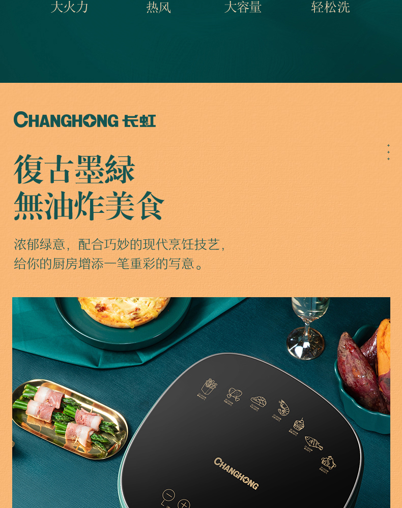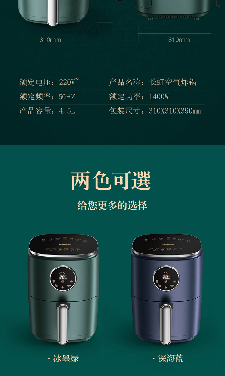 天猫长虹中柏专卖店239元,可领104元优惠券,实付105元到手,是正价289元的3.6折;此外还有智能控温款、全息触控款可选,略有差价。4.5升大容量、无油煎炸、锁住营养和水份,过滤多余油脂,居家使用非常方便。