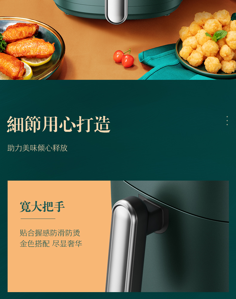 空气炸锅其原理和烤箱类似,通过高速热空气循环,利用食物自身的油脂炸熟食材,相对比传统的油炸更健康,口味也和烧烤的差不多,味道不错。相比烤箱的大体积,空气炸锅更省空间,适合三口之家日常使用,比较实用。