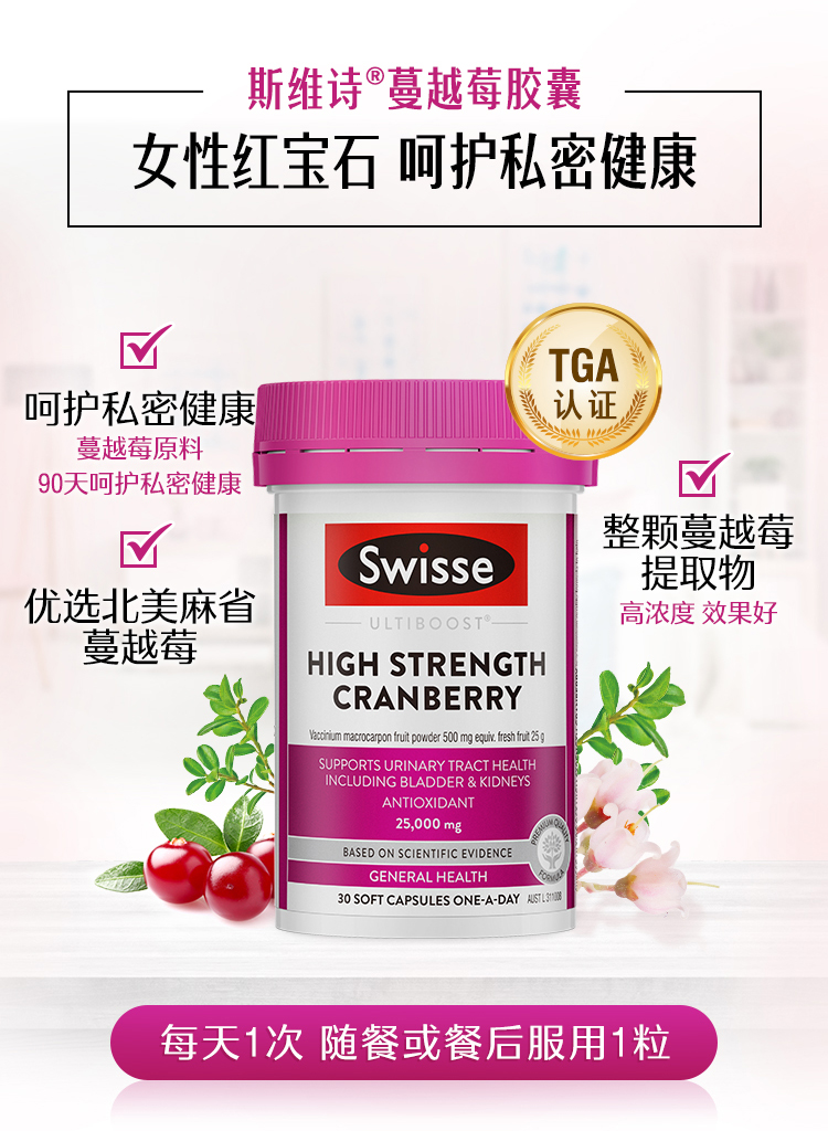 这款Swisse高浓度蔓越莓胶囊,澳洲原产,专门为女性卵巢保养研发的,其作用是改善细菌的侵扰,所导致的感染问题(异味、瘙痒难耐)、泌尿问题(尿急、尿频)和肠胃问题(胃酸、胃痛、拉肚子),还能预防妇科炎症,美白细腻肌肤。