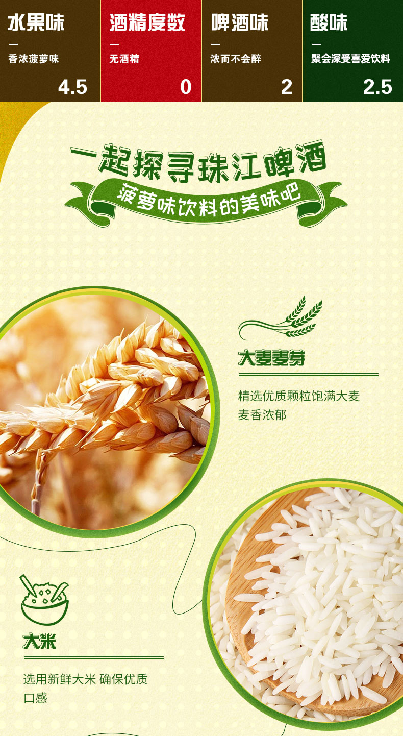 虽说名为菠萝啤,但该产品本质上其实还是汽水饮料,因为它并不含酒精。所以,你可以把它理解为菠萝啤酒味汽水,是酸甜菠萝味和劲爽啤酒香的组合。