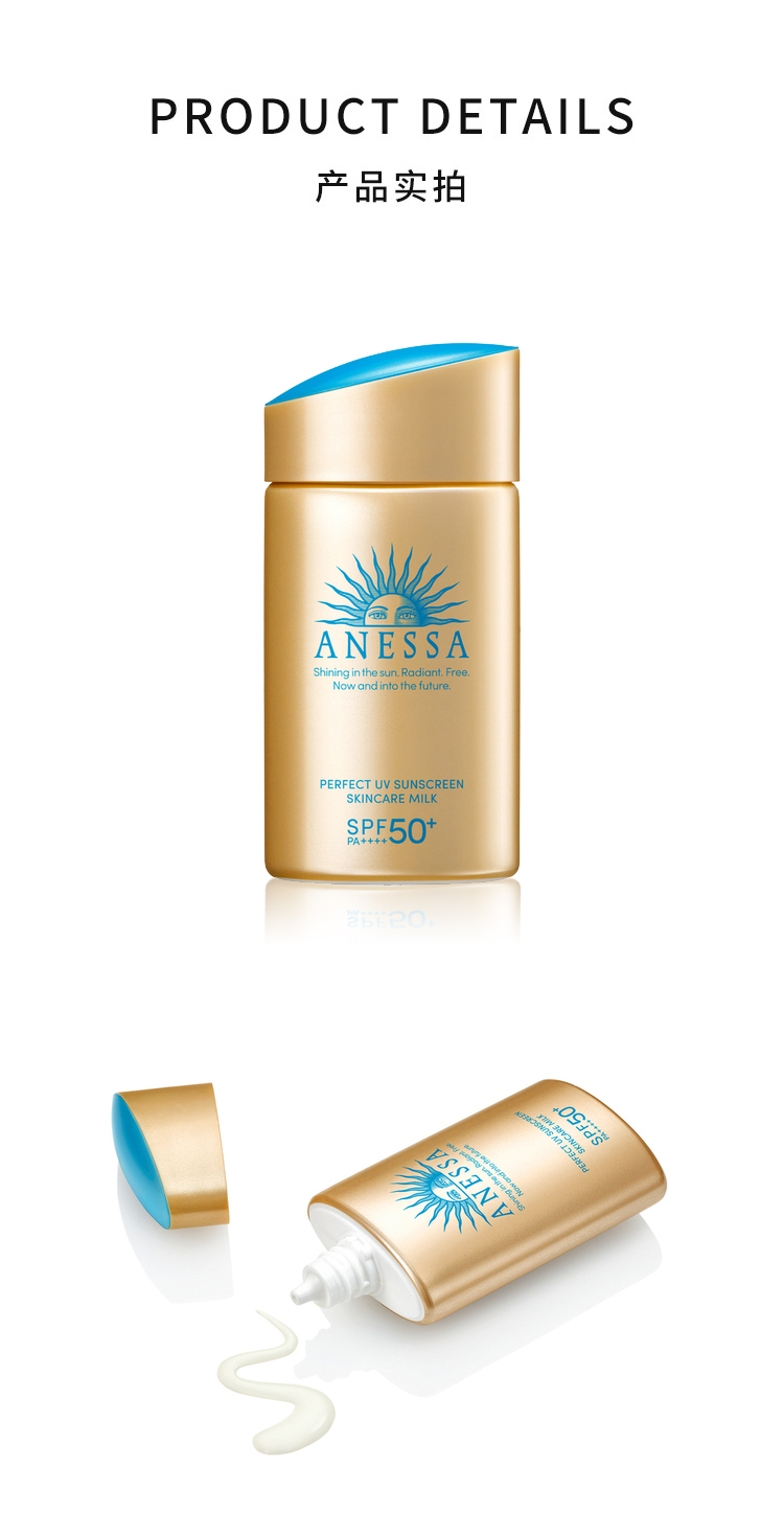 这款安热沙ANESSA蓝帽小金瓶防晒霜,日本原装进口,是2021年的新版,拥有SPF50+这是目前最高的防晒等级,升级水能防晒技术,防水防汗,清爽不黏腻,适合户外运动、去海边度假、海里浮潜时使用,全身都能涂抹。