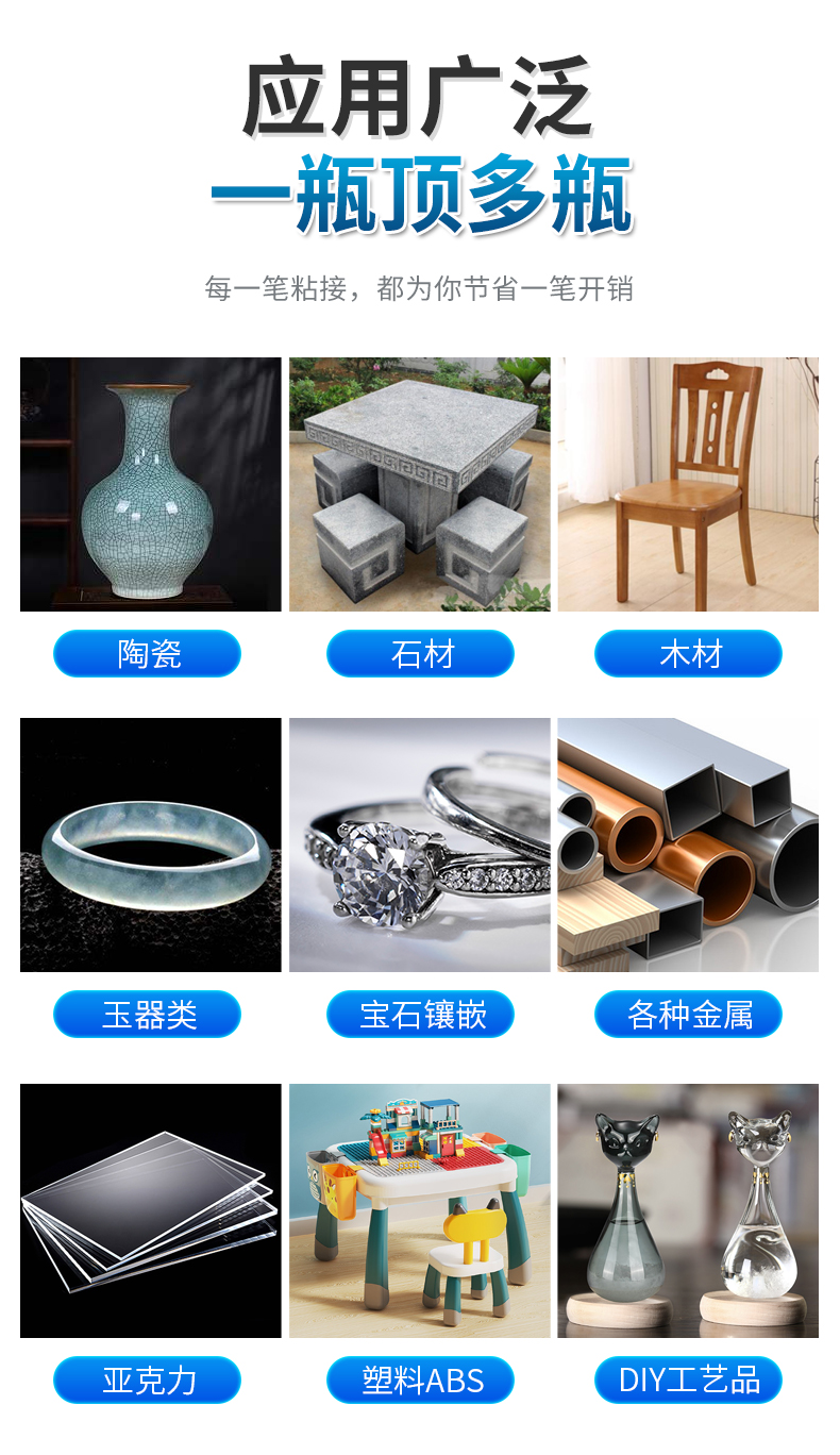 适用于陶瓷,塑料,石材,木材,玉器,玻璃金属等~千万用户的共同选择,一滴完成粘接,比焊接还牢固粘接力超强,快速固化,全透明,高强度,无甲醛,耐腐蚀性,耐温性!【赠运费险】领券链接点此
