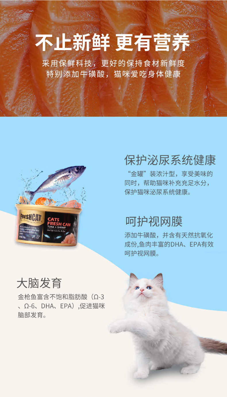 天猫freshcat旗舰店39.9元,可领10元优惠券,实付29.9元到手。这款freshcat 金枪鱼白肉猫罐头,包含鸡肉、虾仁、蟹肉、三文鱼等6口味可选,0防腐剂0激素,添加大块金枪鱼白肉,高汤浓汁,科研配方,特别添加牛磺酸+DHA+EPA+不饱和脂肪酸,促进大脑发育,呵护视网膜,促进胸部发育。鲜虾蛋白丰富,肉质松软,提高抵抗力。不添加防腐剂、诱食剂、抗生素等,纯粹天然。