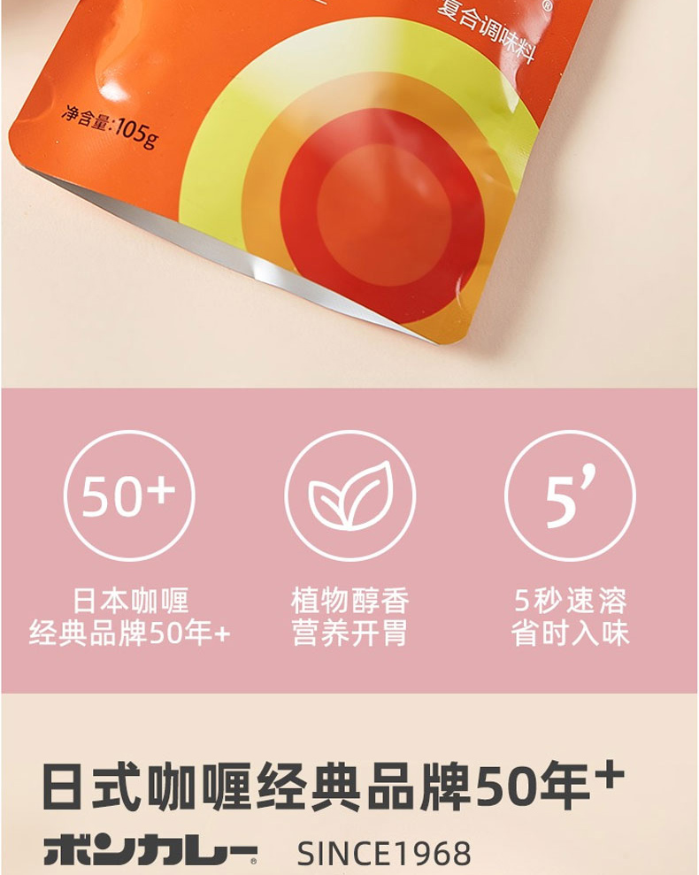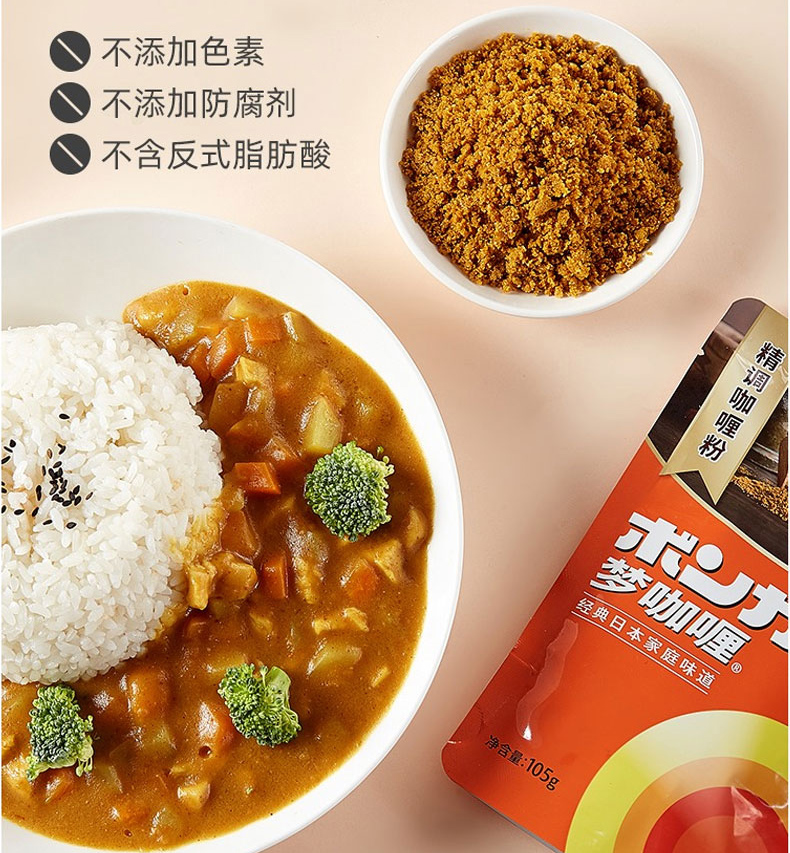 BonCurry梦咖喱,咖喱粉十大品牌,始于1921年,日本大塚集团旗下,是集团年销售总额达到约770亿元人民币的超大型企业。大塚是日本第一批开发“调理包食品”的企业之一,1968年世界第一个料理软罐头——梦咖喱面世,采用日本最先进120℃・4分以上的高温高压杀菌技术,加工而成多种规格的调味包和其他风味料理的软罐头。由于此技术不需要添加防腐剂和制菌剂也可以在常温下保存,所以大大提高了食品的安全性和品质管理。