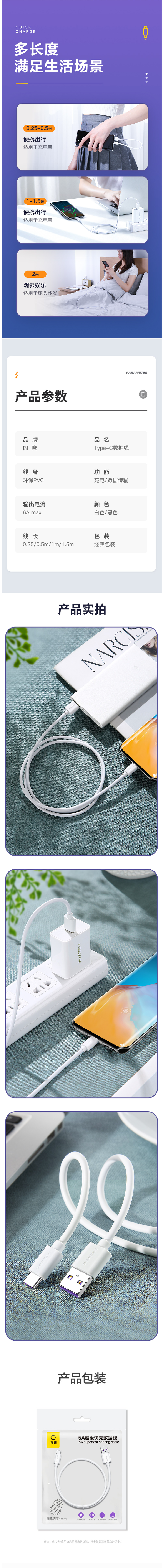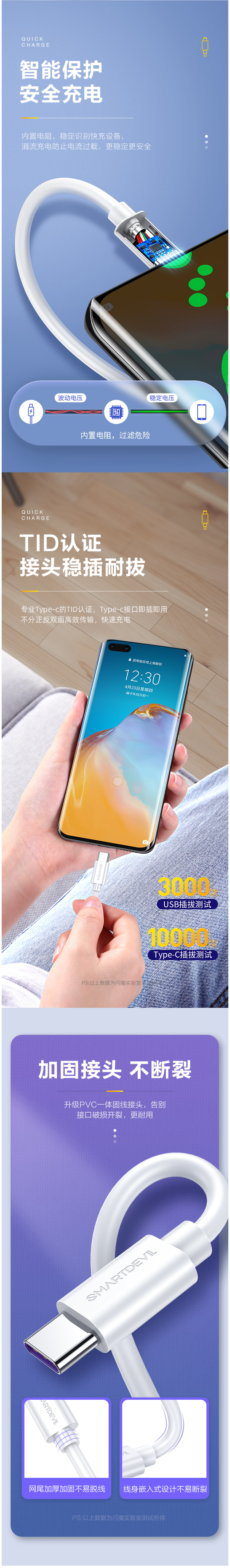 采用加粗镀锡铜线芯,充电传输二合一,正反都可插。支持小米系列高通QC3.0快充协议,并向下兼容QC2.0。内置电阻,稳定识别快充设备,涓流充电防止电流过载。升级PVC一体固线接头,告别接口破损开裂风险。
