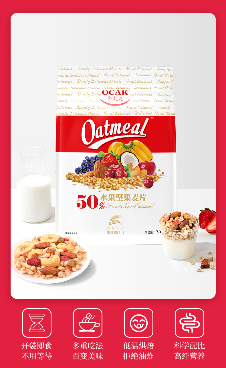 天猫欧扎克旗舰店89元,可领30元优惠券,实付59元到手,选五种水果,四种坚果和谷物科学搭配,口感脆香浓郁,营养丰富,含百分之五十水果坚果,给你脆香好吃的零食燕麦,赠运费险