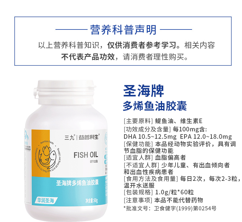 华润三九旗下品牌-益普利生!深海鱼油软胶囊,调节血脂血压,适合三高人群,预防老年痴呆,改善视力,辅助降血脂,守护家人的健康!领券链接点此