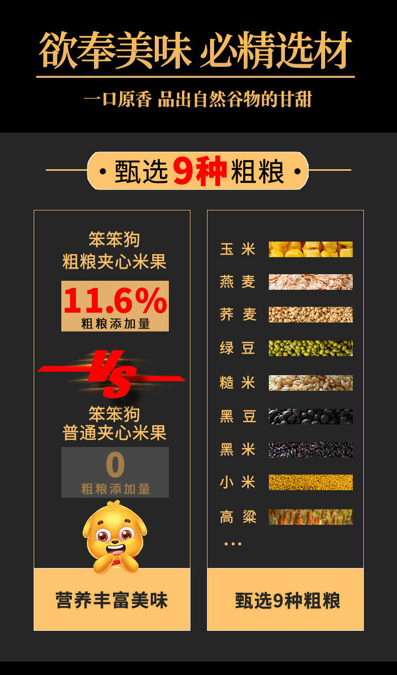 采用粗粮制作,酥松可口,配上夹心,美味又营养,老少皆宜。小编最爱零食之一,米果口感真的超好吃,个人推荐蛋黄口味。