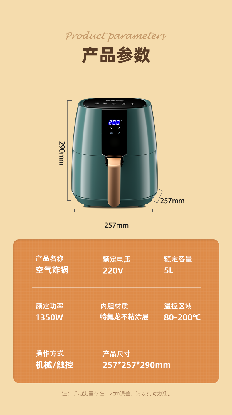 天猫飞达仕旗舰店278元,可领80元优惠券,实付198元到手,最后一款电子升级款此价。采用进口机芯,控温精准,无油煎炸、锁住营养和水份,过滤多余油脂,5L大容量,可炸整鸡,使用一次满足全家需求。