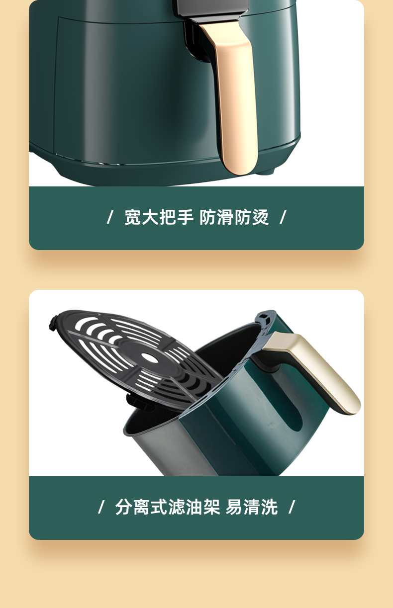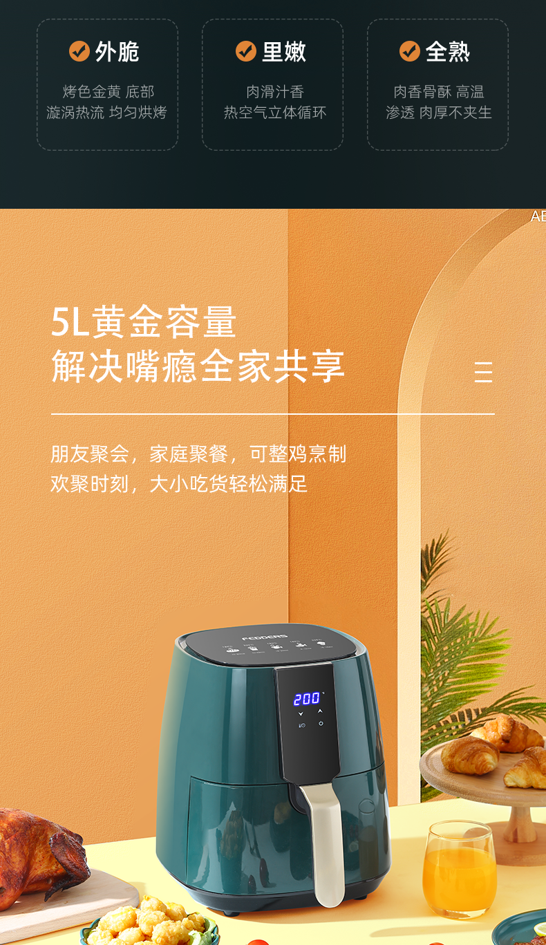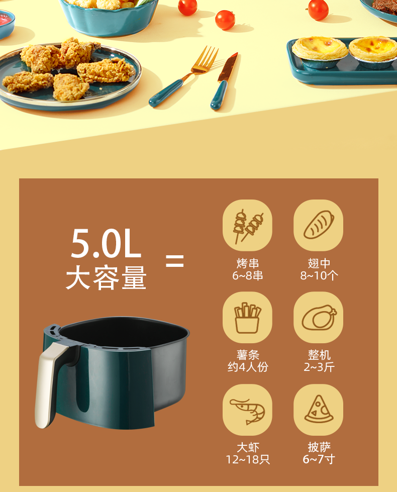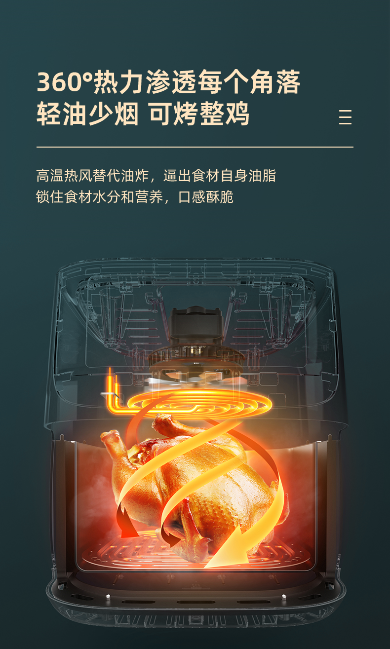 空气炸锅其原理和烤箱类似,通过高速热空气循环,利用食物自身的油脂炸熟食材,相对比传统的油炸更健康,口味也和烧烤的差不多,味道不错。相比烤箱的大体积,空气炸锅更省空间,适合三口之家日常使用,比较实用。
