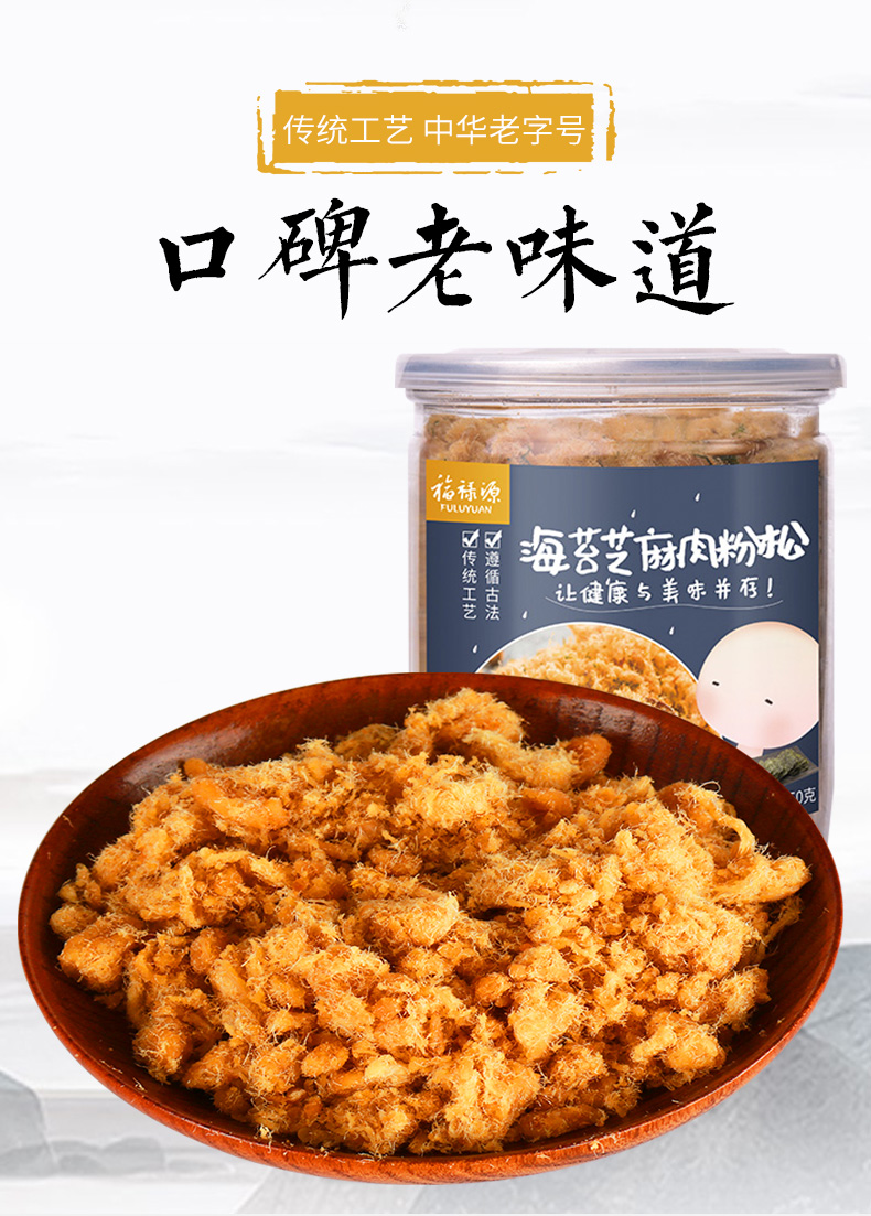 这款福禄源肉松,是厦门鼓浪屿特产,以鲜嫩猪后腿肉为原料,无生水除筋膜,再经过不断的缠、碾、翻等工艺制成,肉松味清香,色泽金黄,絮状松散,味道鲜美,甜咸适口,香味纯正,用来拌粥、炒饭、包饭、拌菜等等都好吃,做面包、寿司更是绝配。