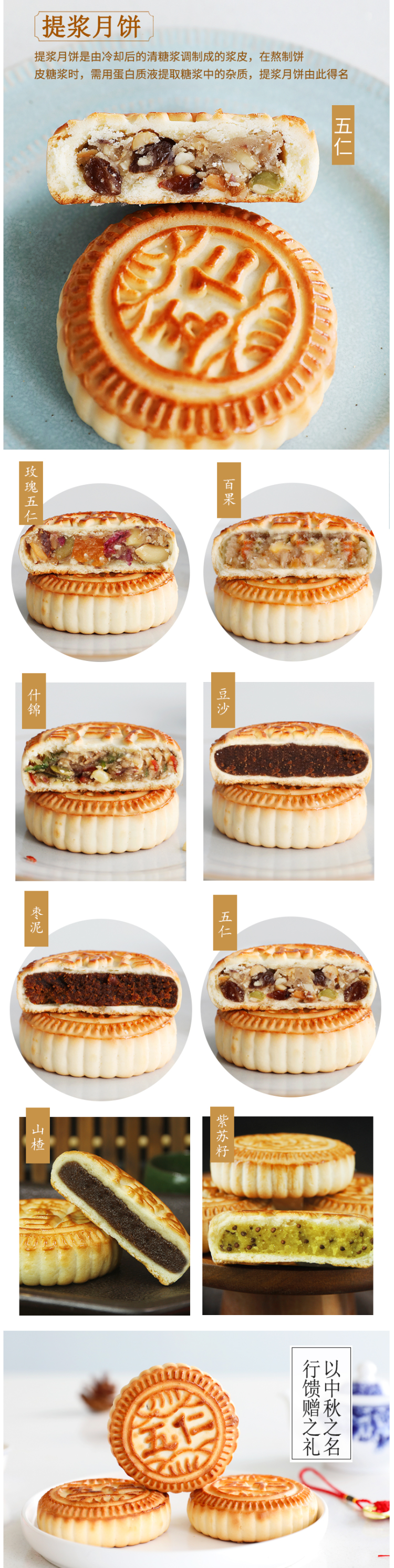 提浆月饼,是由冷却后的清糖浆调制成的浆皮,在熬制饼皮糖浆时,需用蛋白质液提取糖浆中的杂质,提浆月饼由此得来。
