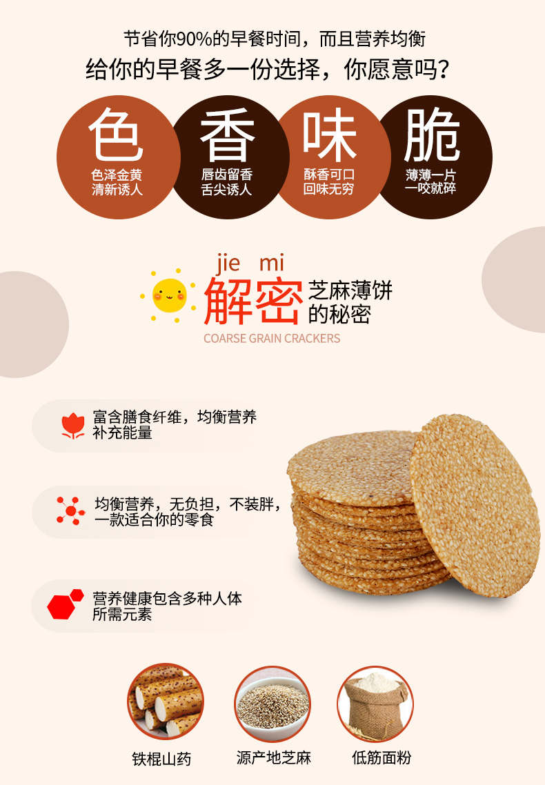 天猫小鸟阿吉旗舰店17.9元,可领2元优惠券,实付15.9元到手;铁棍山药芝麻脆饼传统糕点厂家直销。薄饼色香味俱全,薄薄一片,一咬就碎。采用中粮特等低筋面粉、铁棍山药、芝麻、制成,富含膳食纤维,均衡营养补充能量。当早餐干吃或者搭配酸奶等食用都可。