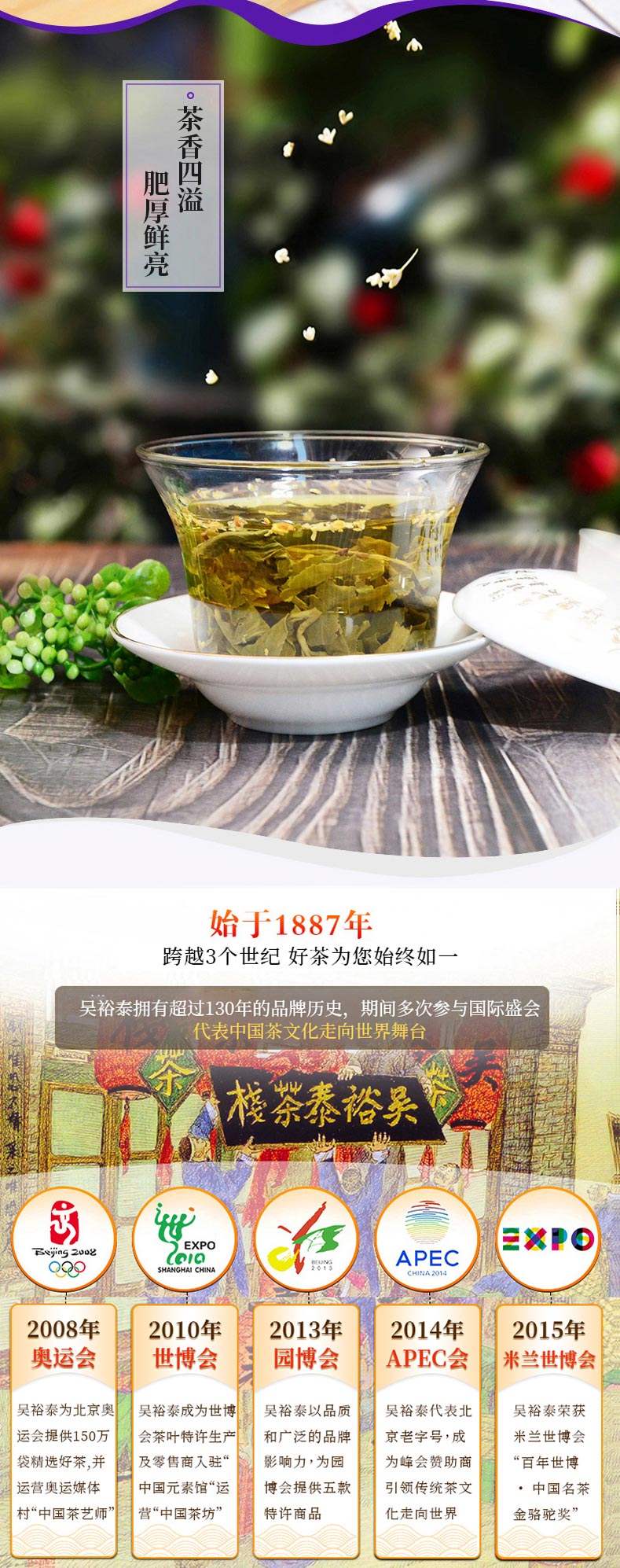 吴裕泰始创于1887年(清光绪十三年),至今已有130余年的历史,是商务部首批认定的“中华老字号”,茉莉花茶制作技艺被文化部列入国家级非物质文化遗产保护名录。