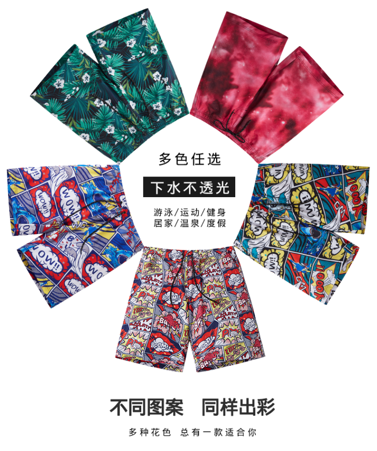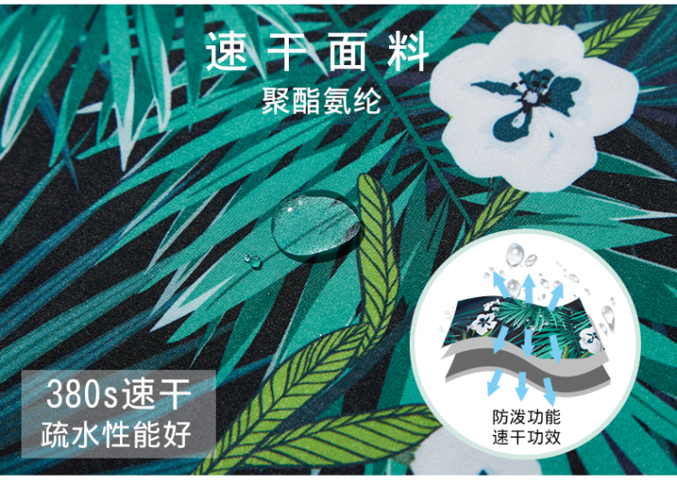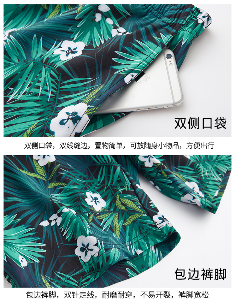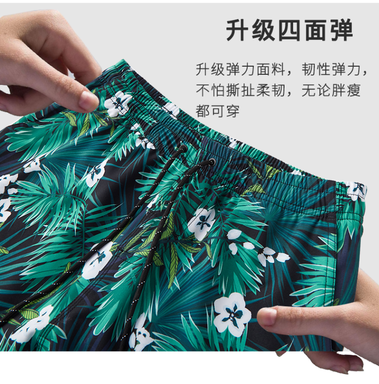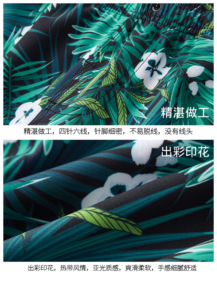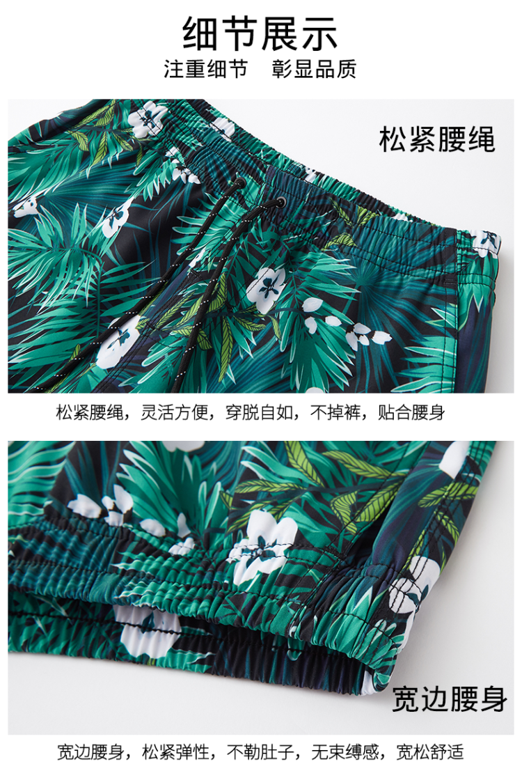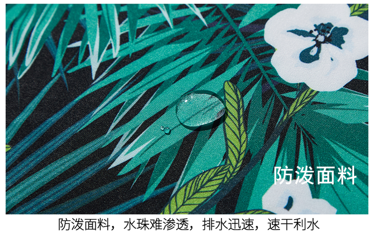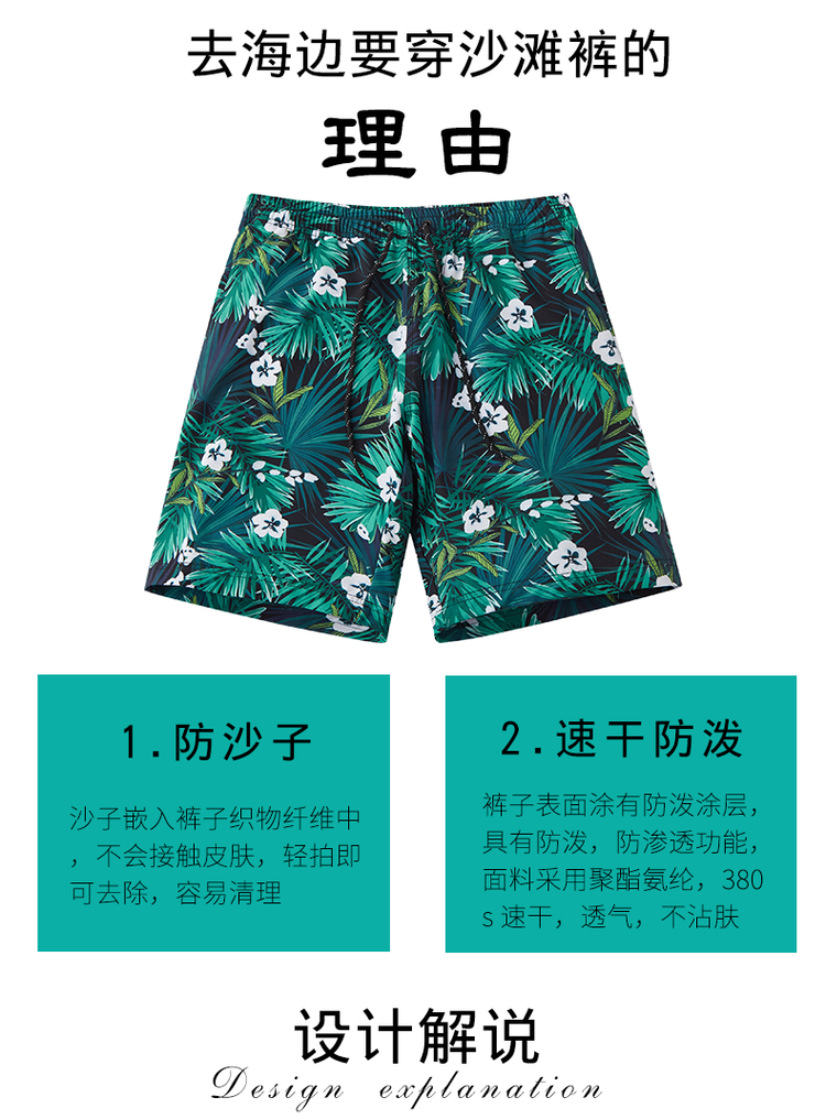 多色可选。这款沙滩裤采用速干面料制成,裤子表面涂有防泼涂层,湿水之后能迅速滑落,可直接穿着下水。粘上沙子之后,也容易拍打掉。内里带内衬,防止走光,松紧抽绳腰带,不勒腰更舒适。印花图案层次分明,色彩艳丽,牢固不易掉色,也可当休闲裤穿着。