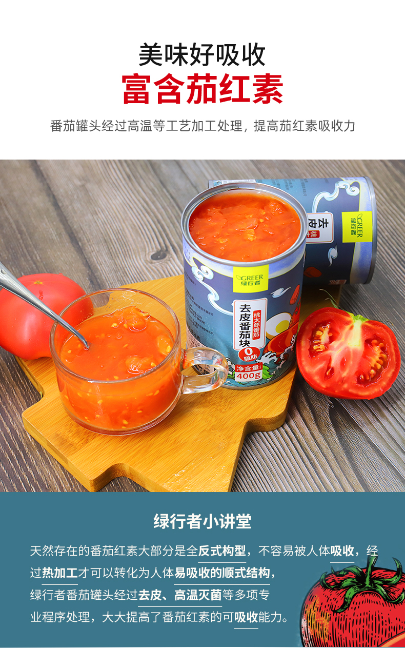 天猫绿行者食品旗舰店69.9元,可领40元优惠券,实付29.9元到手。北京奥运会核心区食材供应商、上海合作组织青岛峰会的农产品专供基地,智慧温室出品,果肉香甜,去皮切丁,可直接食用也可炒菜煮汤,非转基因番茄,富含各种人体所需营养元素。天然0添加,0脂肪,天然存在的番茄红素大部分是全反式构型,不容易被人体吸收,经过热加工才可以转化为人体易吸收的顺式结构,这款罐头经过去皮、高温灭菌的那个多想专业处理,大大提高了可吸收能力,非常方便。