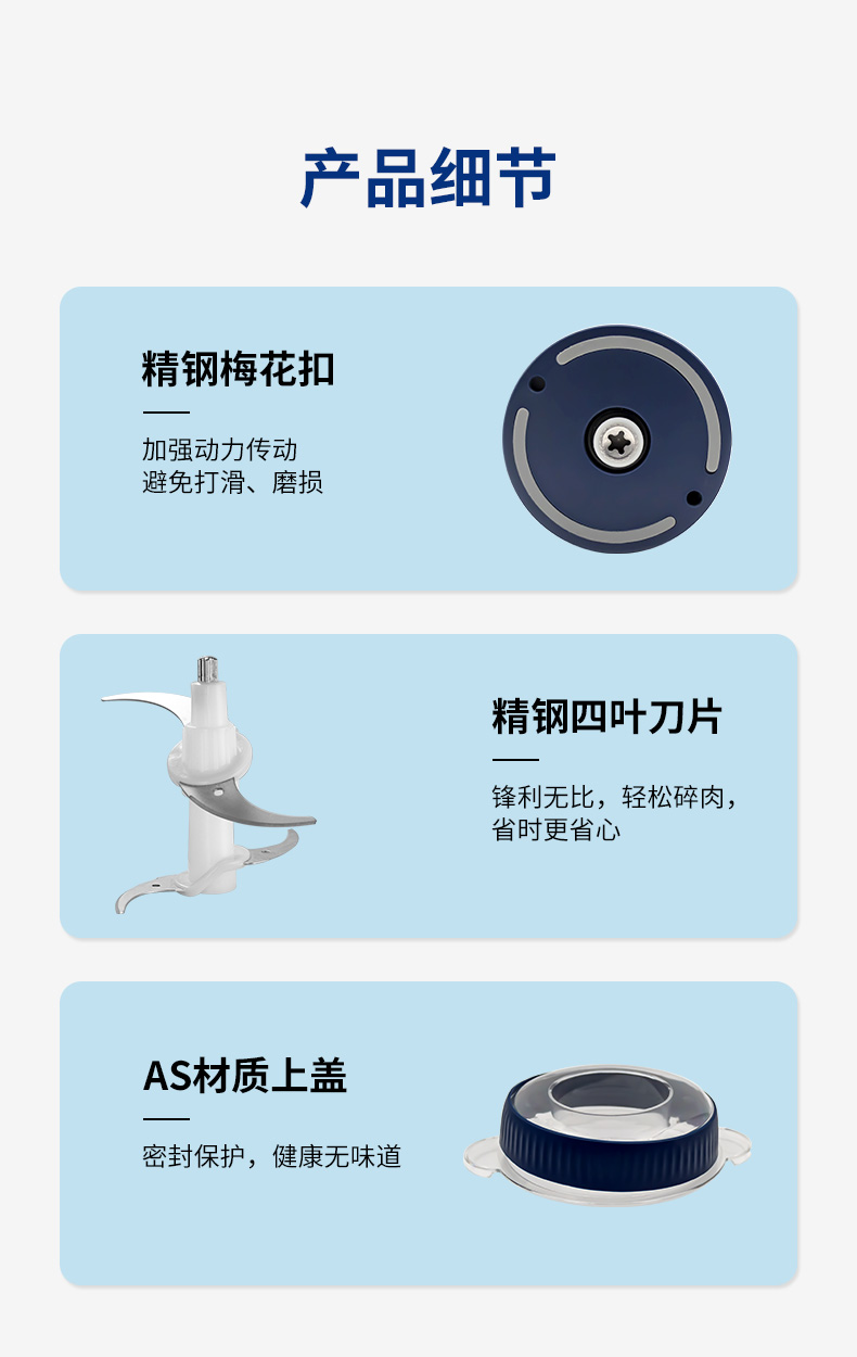 天猫四季沐歌花非尔专卖店79.9元,可领40元优惠券,实付39.9元到手,1.5斤容量一套刀具此价,小型电动搅碎器,功率是300W,使用双层4叶不锈钢刀片,立体S型设计,能均匀切割搅碎。厚实的玻璃碗体。拥有快、慢双档转速调节,适合不同食材