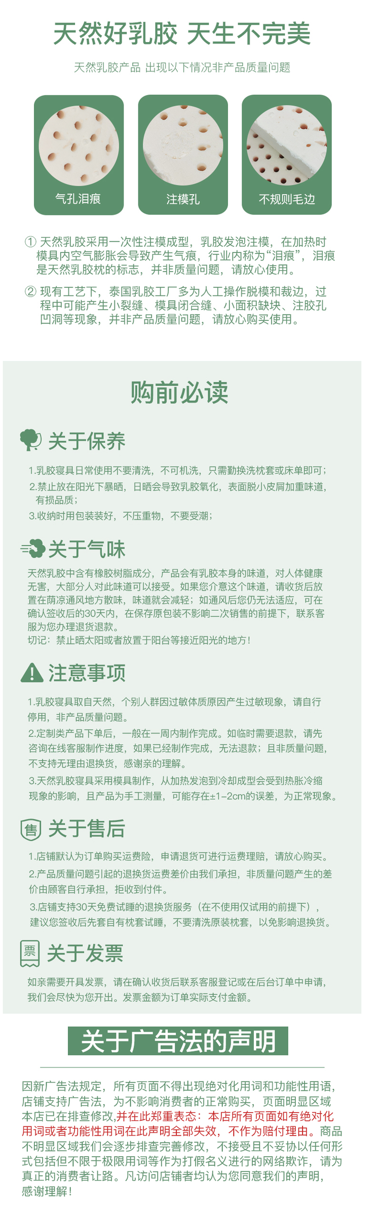 乳胶枕、床垫,是天然橡胶经过发泡而成,其实手感和海绵差不多,但是回弹、硬度和环保方面都优于海绵。天然乳胶枕、床垫的缺点是透气差,所以要打很多小孔,或者设计凸起的大颗粒,来达到透气的效果。