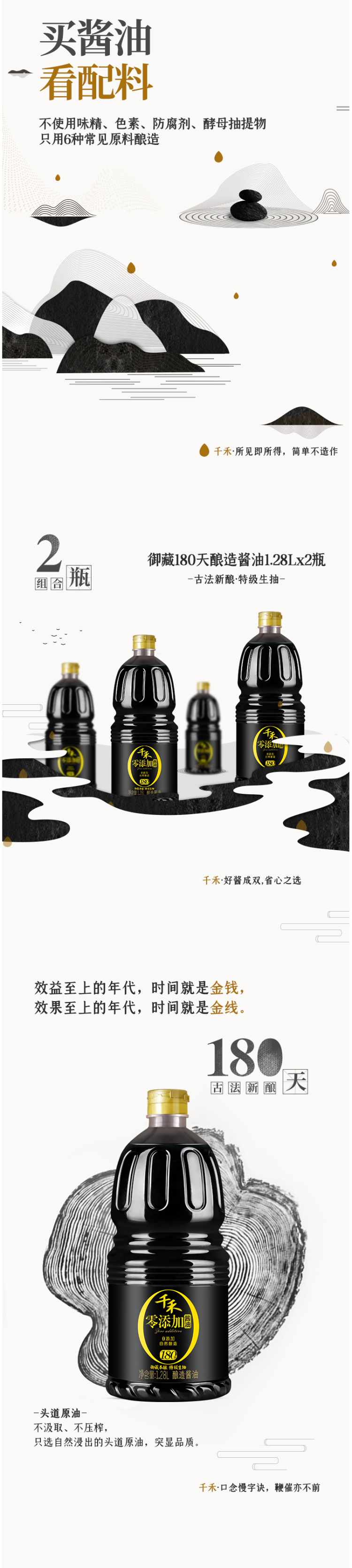 天猫V榜推荐,千禾 180天酿造 零添加酱油,就是原来的千禾头道原香特级生抽,采用黑龙江非转基因脱脂大豆,水源来自岷山雪域高原之水,38道工序,180天发酵,封罐秘制,氨基酸态氮含量1.1,不添加任何人工添加剂,口感醇厚,香味浓郁。