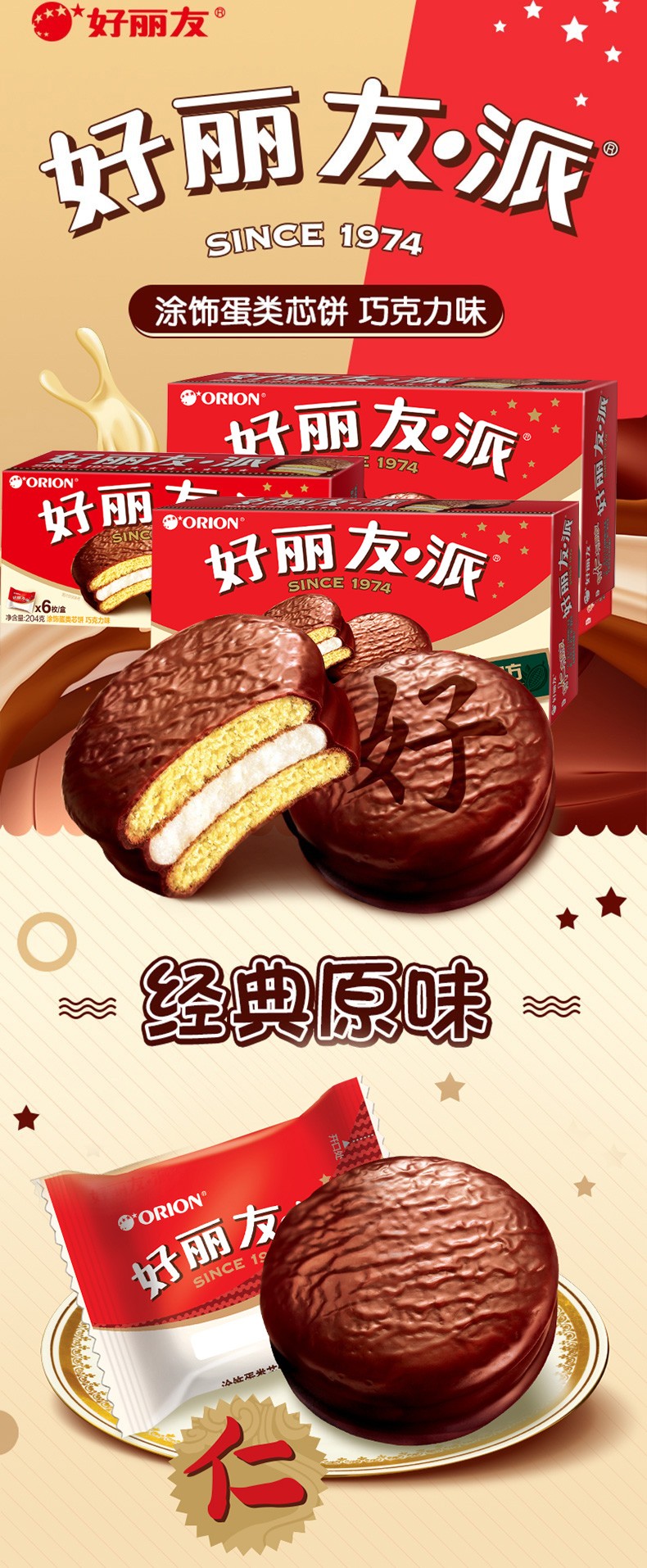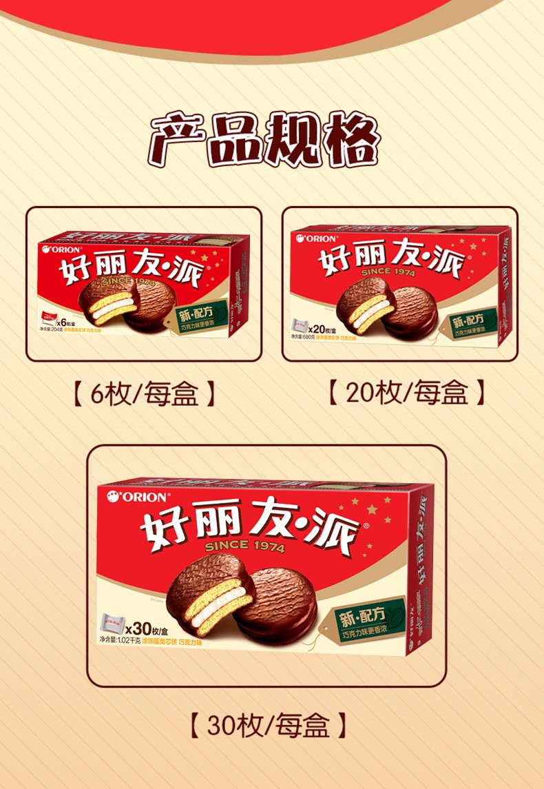 天猫orion好丽友旗舰店24.9元,可领5元优惠券,实付19.9元到手,是正价39.9元的5折;巧克力派礼盒20枚!巧克力味涂层,棉花糖夹心,精选小麦粉,好吃不腻又饱腹领券链接点此