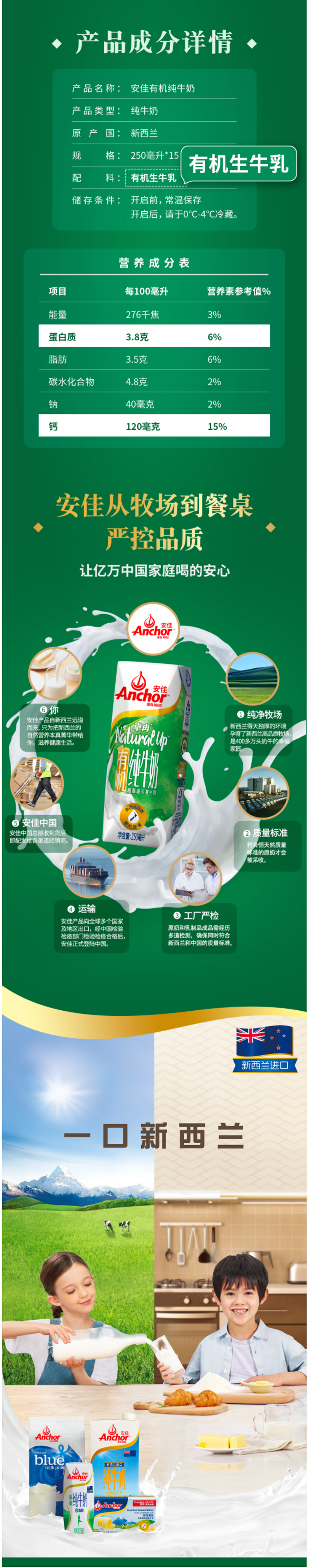 这款安佳Anchor有机纯牛奶,重视奶源,用优质有机饲料喂养奶牛,得到高质量的纯净鲜奶,还富含β-胡萝卜素,会使奶呈现偏黄健康色。