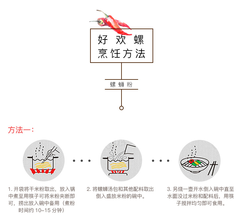 螺蛳粉是广西的传统小吃,具有辣、爽、鲜、酸、烫的独特风味。好欢螺一直口碑不错,螺蛳粉届扛把子。选料正宗,香辣可口,粉也是劲道有嚼劲。此款螺蛳粉为水煮型,内有丰富配料:卤水螺丝肉包、花生腐竹包、萝卜酸豆角包、黄花菜木耳包、酸笋包、酸醋包、红油包~