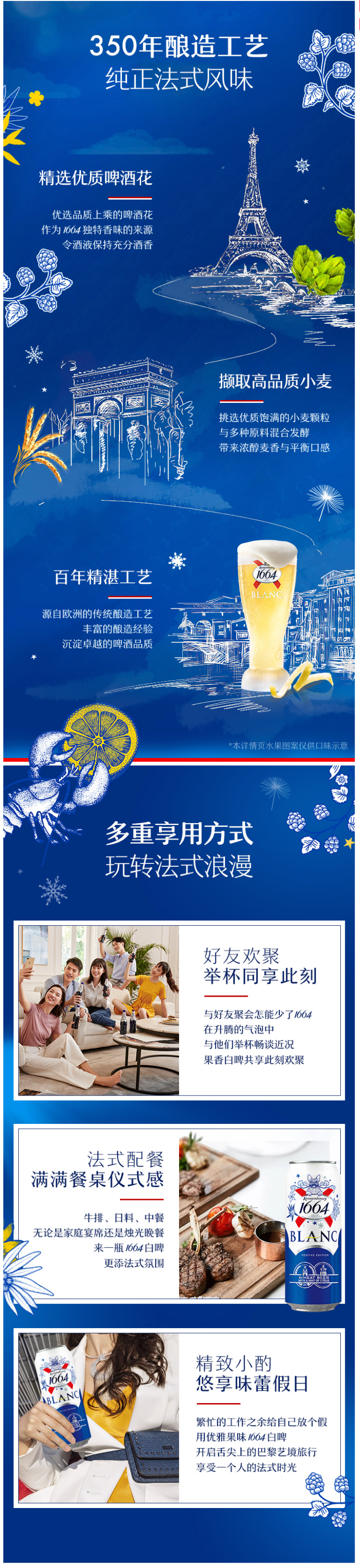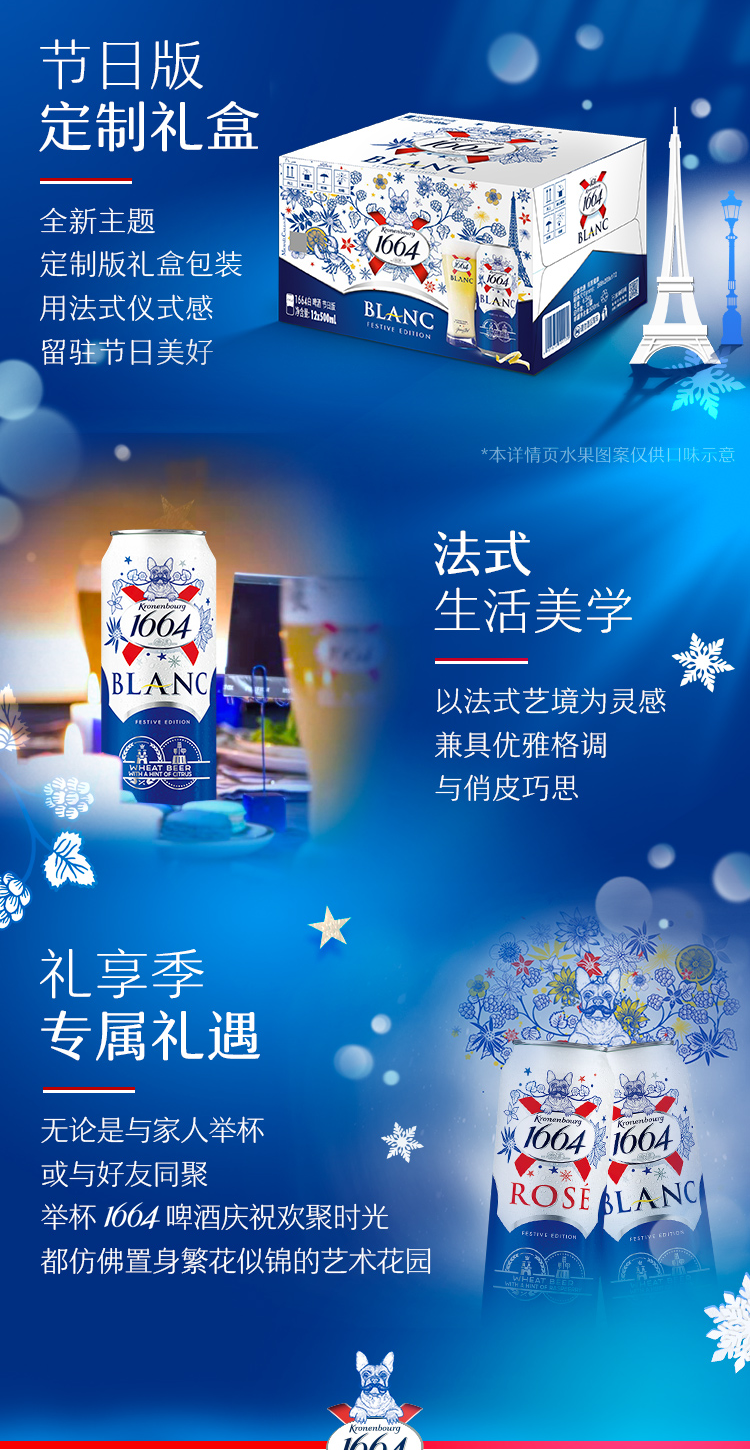 1664白啤酒是法国销量第一英国销量第二的啤酒,因其有着淡淡的水果香味,很多女孩子也都非常喜欢这款啤酒,超市6瓶是需要174元,在酒吧更不用说414元的价格有多高,