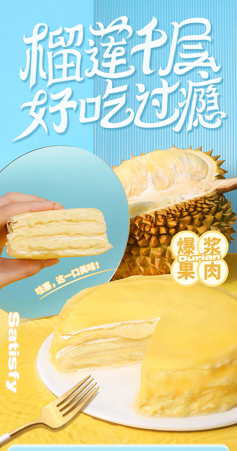 每日现做现发限时优惠,全国顺丰生鲜包邮。单盒约500g,榴莲千层中肉高达200g,占整体一半,选用优质安佳黄油、金枕榴莲、进口芝士等原材料制作,香浓味美,口感绵软细腻。