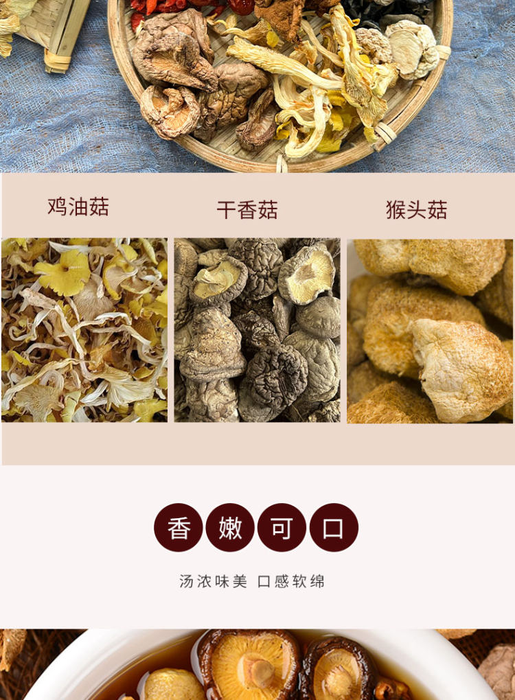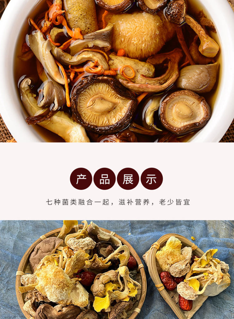 天猫农老九旗舰店29.9元,可领10元优惠券,实付19.9元到手,是正价50元的4折;来自大自然的山珍美味,采用多种美味菌菇,严格质检,安全无硫。含茶树菇、羊肚菌、牛肝菌、鸡油菌、古田竹荪、姬松茸、虫草花,新鲜特级精选,煲汤鲜美~领券链接点此