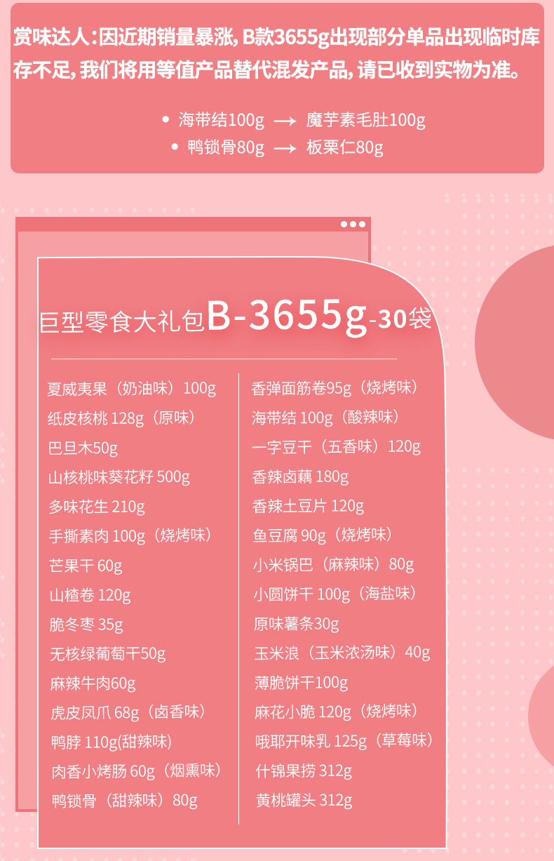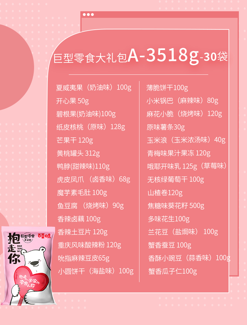 天猫百草味旗舰店198元,下单立减40元,可领20元优惠券,实付138元到手,百草味巨型零食大礼包,7斤30袋,自带惊喜光环,送人自用都不错,超多小吃,让你一次吃个够。领券链接点此