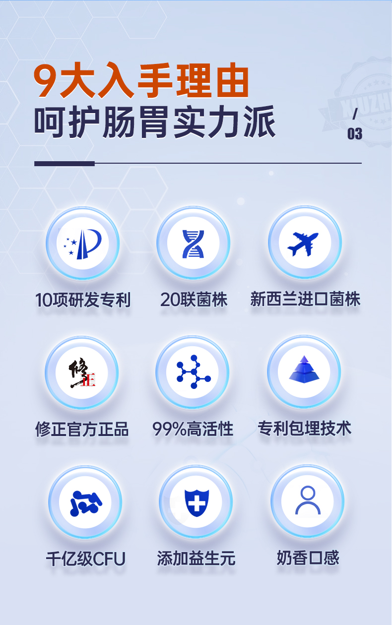 天猫修正食品旗舰店69元,可领54元优惠券,实付15元到手,修正品牌,针对国人肠胃开发,5大菌株专利,20大活性菌株,千亿活菌,保障肠胃及全身健康。