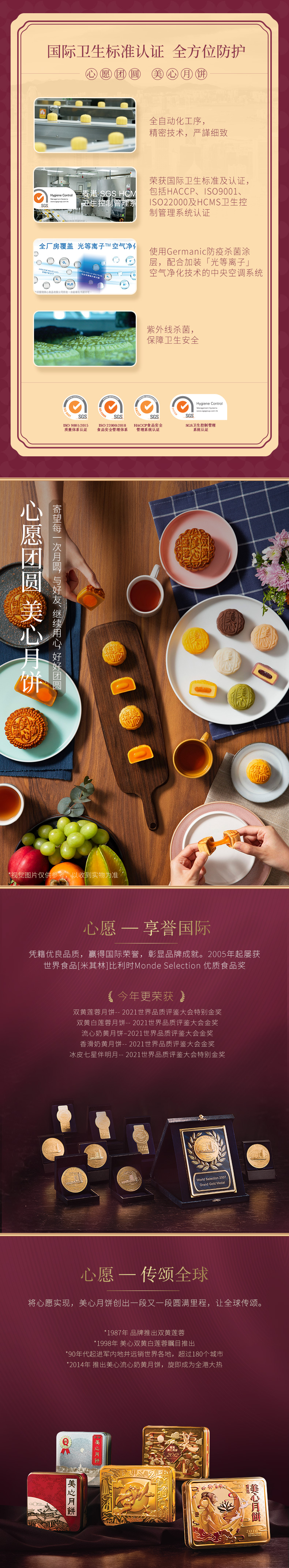 这款香港美心 冰室/芒果/燕窝冰皮月饼组合 16个480g,共计4盒,1盒30g*4个,内含:芒果*2、芒果柚子绿豆*2、芒果燕窝*2、冰糖燕窝*2、柠檬茶味*2、柠檬可乐味*2、红豆冰味*2、咸柠檬味*2。采用北海道3.6牛乳制作饼皮,呈现软糯Q弹的冰凉滋味,果味清香,包装精致,中秋送礼佳品。