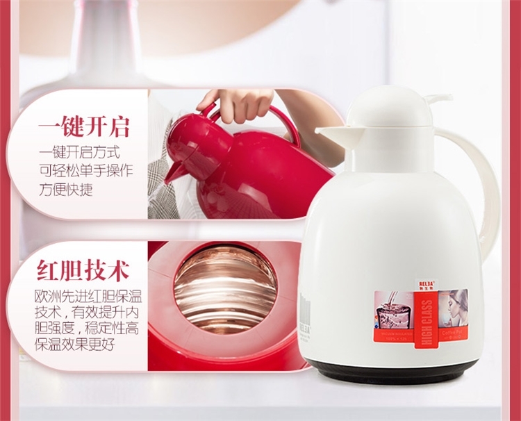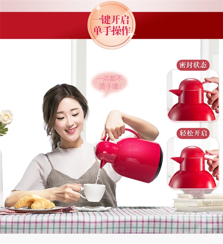 1.5L容量,大小刚好,进口红胆保温技术,高效保温,款式洋气,放在办公桌书桌上刚好。环保食品级PP外壳,食品级密封硅胶圈,玻璃双层正空内胆,三层物理锁温,中强效锁温,保热保冷。