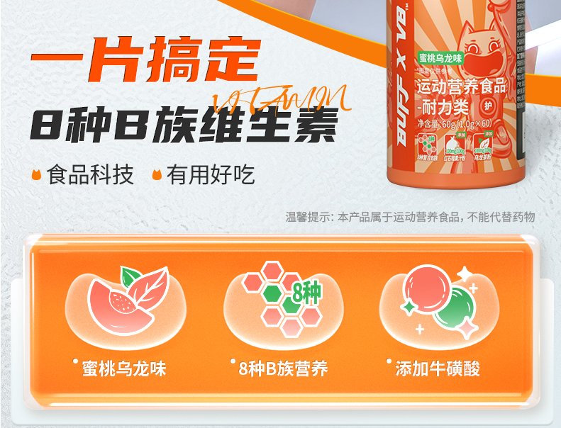 天猫buffx旗舰店74.9元,2件可领135元优惠券,2件实付14.8元到手,是正价119元的6.2折;创新蜜桃乌龙味好吃的维B,多维vb牛磺酸片,缓解疲劳,活力满满领券链接点此