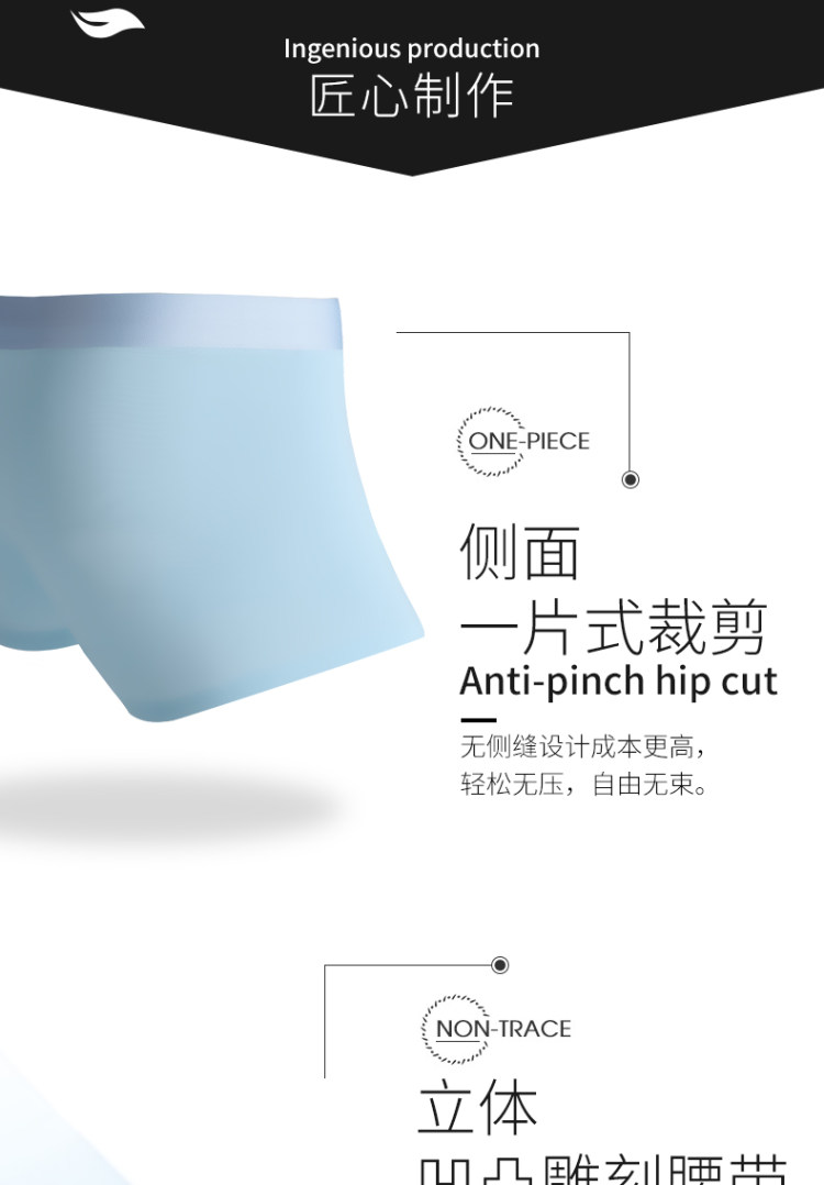 细节上:3D立体裁剪,不夹臀,不磨裆,不走位;加宽原布包边,不易卷边不易变形,凸起式囊袋设计,符合男性生理机能结构,贴合舒适不紧绷。无痕裤脚、不易卷边,不易变形,贴身舒适不束缚,内印无感标签,亲肤无刺痒感。