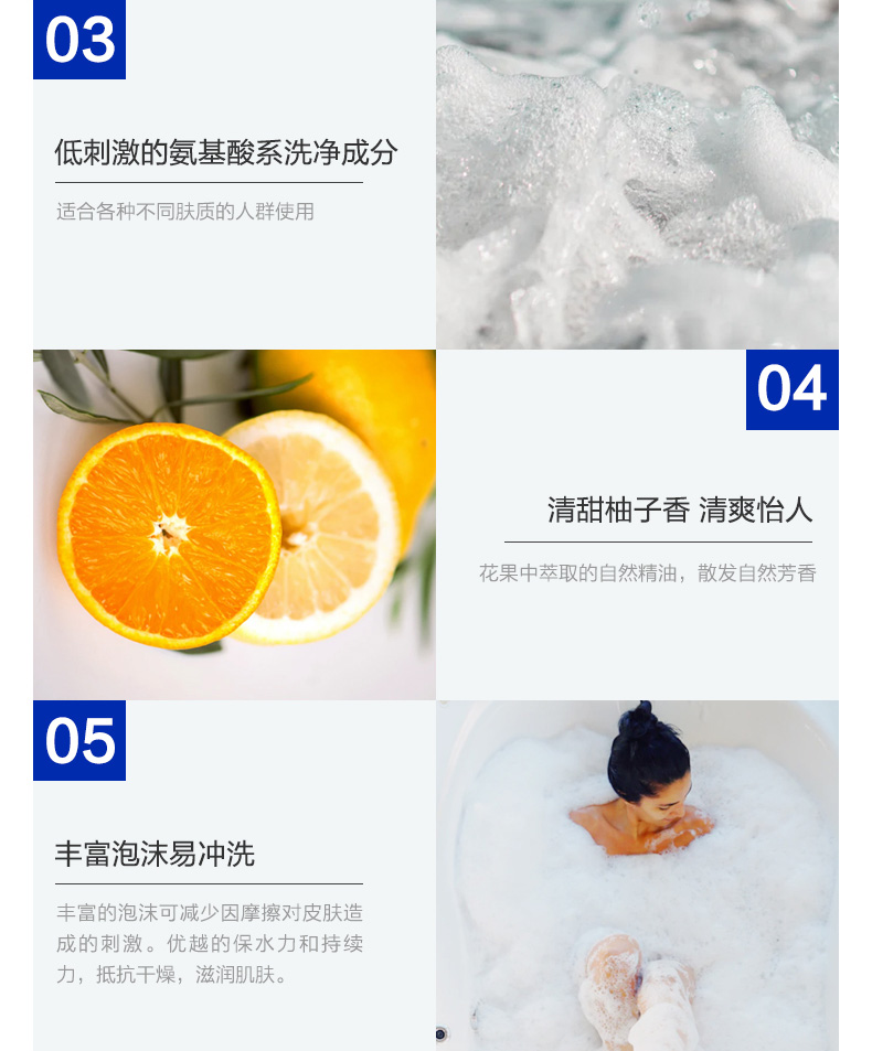 植物精油氨基酸沐浴露,天然柚子皮提取精油,植物萃取,洗出清爽润泽肌,清甜柚子香,清爽怡人。