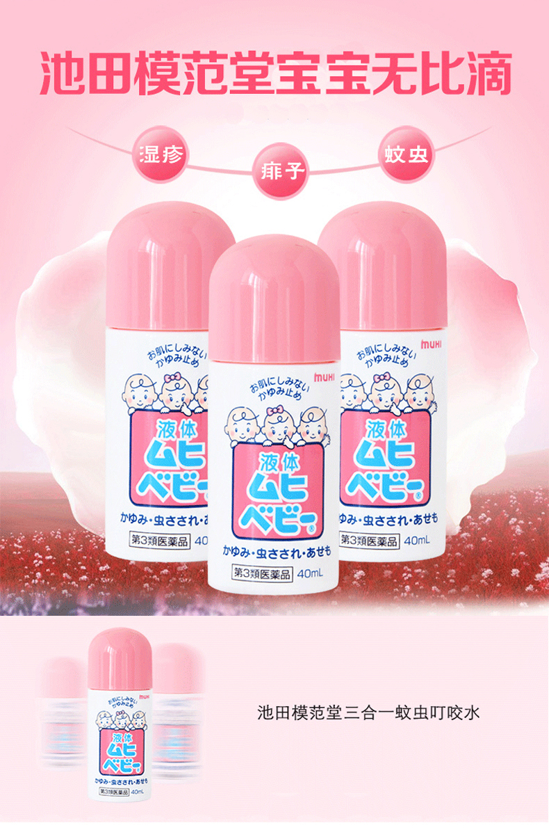 池田模范堂无比滴是日本MOPIDICK品牌产品,用于防治蚊虫叮咬、湿疹、汗疹等皮肤问题的外用药品,涂擦在肌肤表面上可以迅速起到止痒、镇痛的作用。纯天然植物提取成分,安全无刺激,可用于皮肤破损处,几乎是有任何皮肤不适都可以使用的万能产品,蚊虫叮咬后及时涂抹,立马就不会痒了,不久包包就会不知不觉的消下去。所以基本是每次去香港的必买囤货。