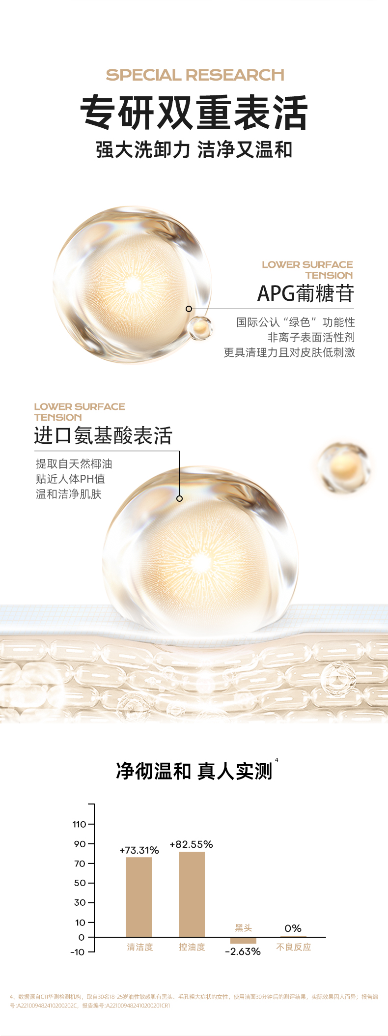 氨基酸APG复配洁面 去油不去水 洗卸合一。