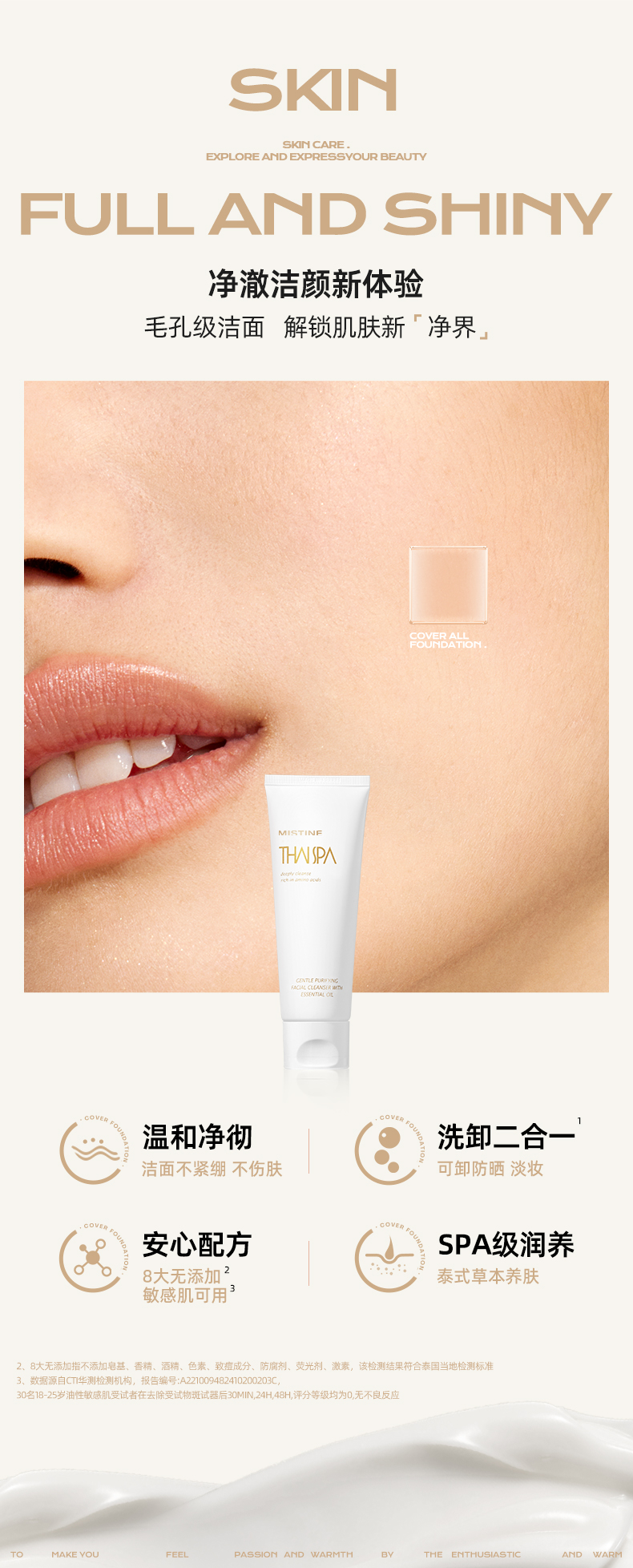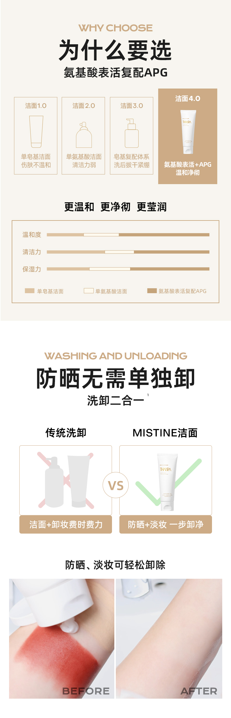 泰式SPA氨基酸洁面,SPA级别的洁面效果,洗后不易拔干,提升肌肤水润度,敏感肌也能放心使用。