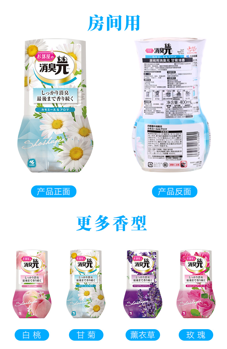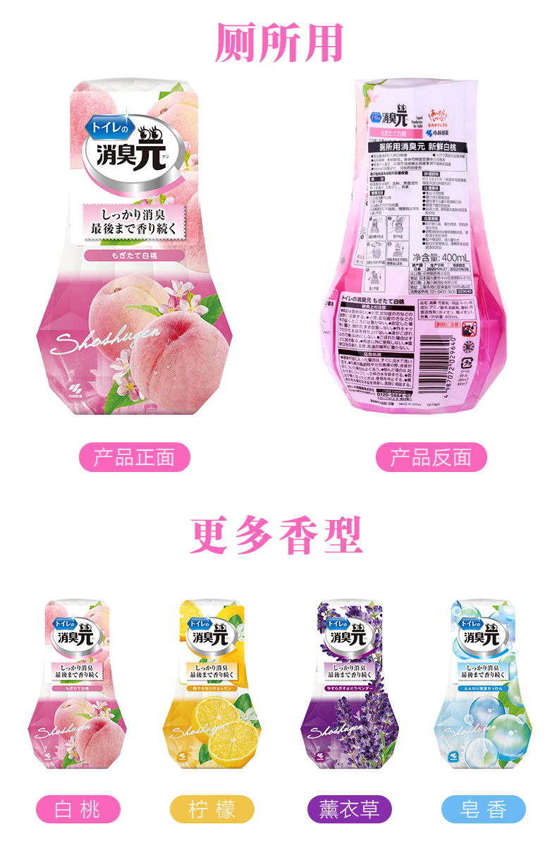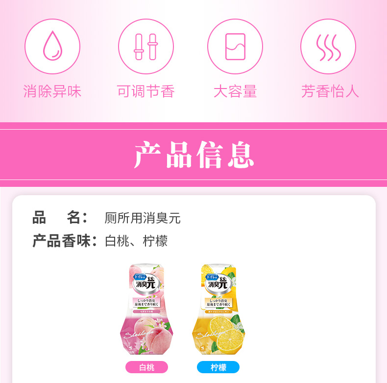 厕所用:白桃味、柠檬味;房间用:白桃味、柑橘味;