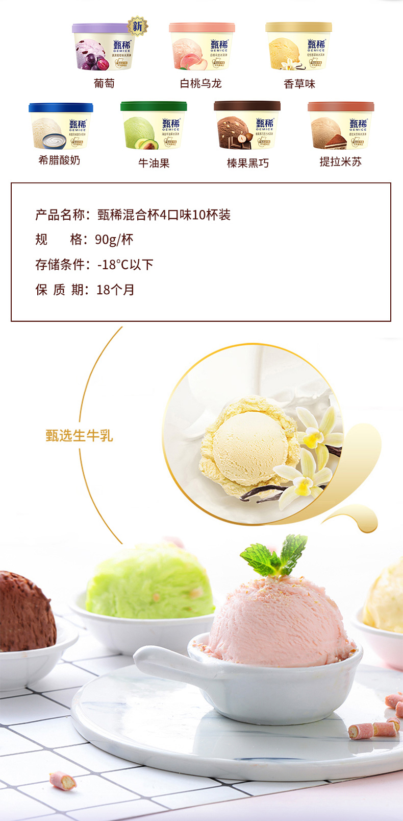 甄稀是伊利旗下的一款高端冰淇淋品牌,采用微米级工艺,带来独特的细腻口感享受,精心搭配希腊风味活性乳酸菌以及世界各地优质水果等食材,带来与众不同的美味体验。