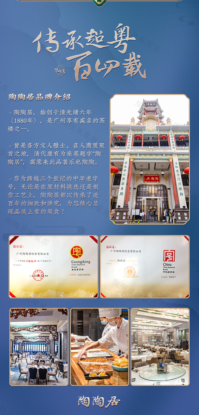 陶陶居创立于清光绪六年(1880年),是广州饮食业中的老字号之一,也是广州最有名气的茶楼之一,主要经营名茶、茶点、茶食及酒菜餐饮。
