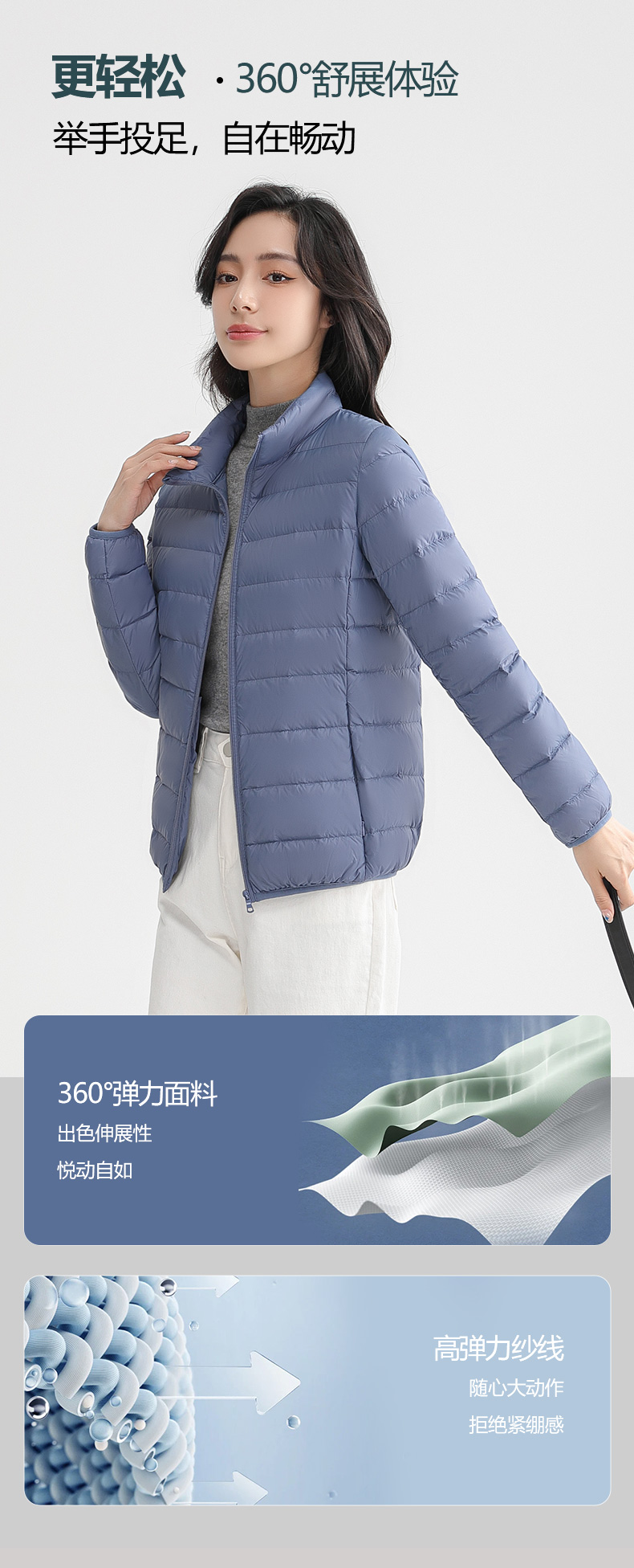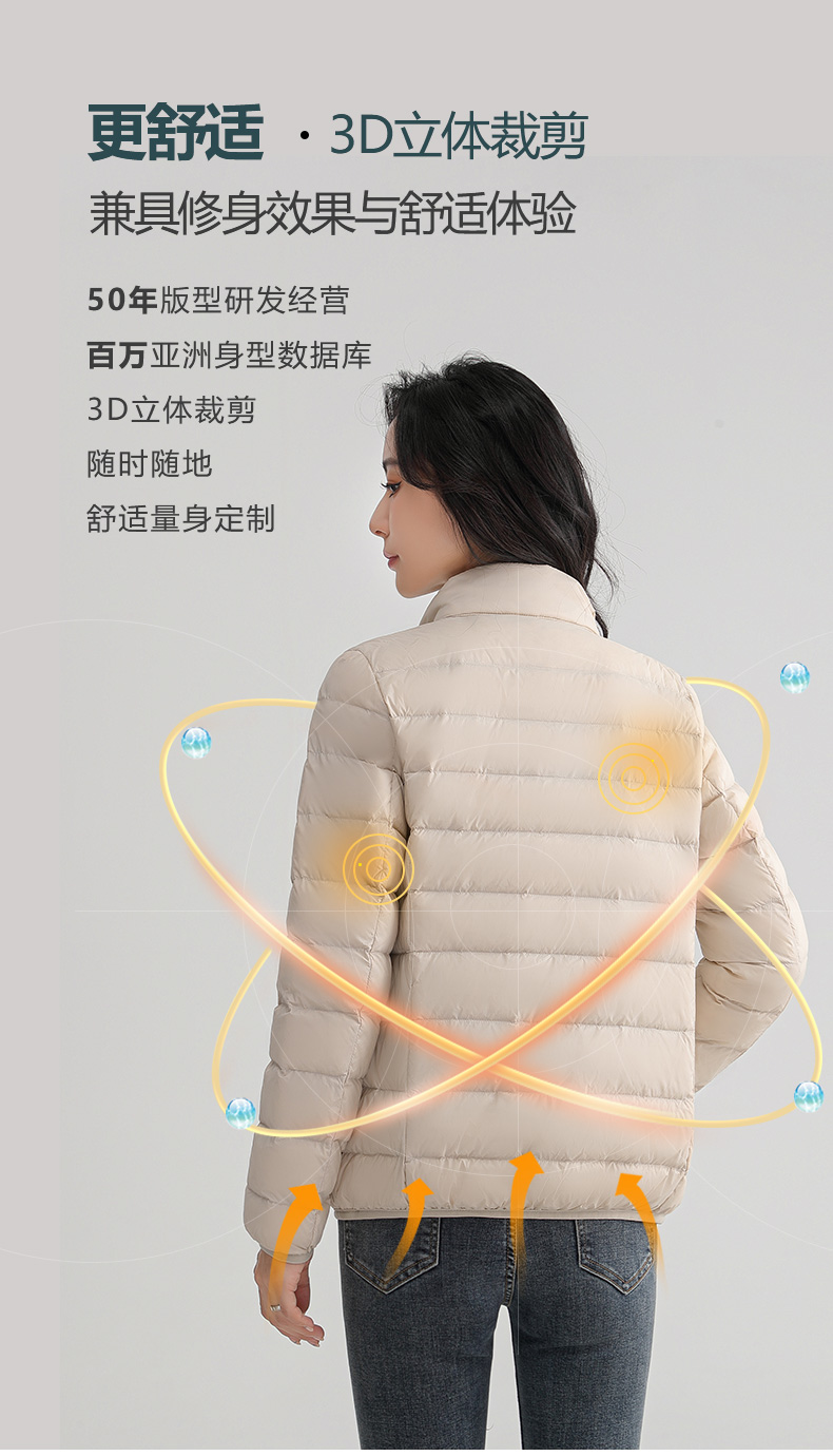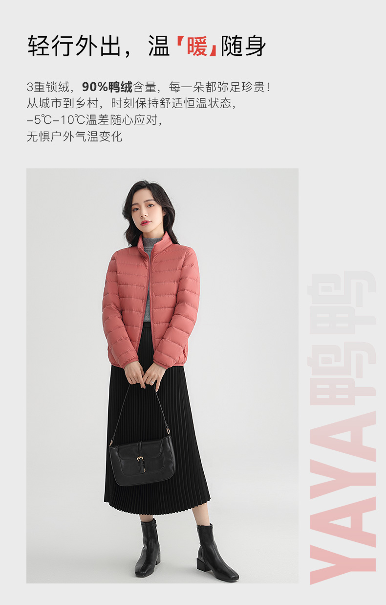 甄选优质白鸭绒填充,含绒量90%,蓬松度高,保暖性佳,800+清洁度,清洁无异味,外层尼龙面料,高支高密防泼水、结实防磨耐刮,分格充绒技术,有效防止钻绒,且防污防水易清洗;赠送轻薄收纳袋,体积小巧外出便携。